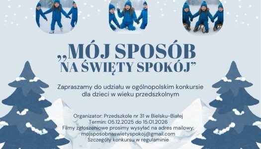 Zapraszamy dzieci i rodziców do udziału w ŚWIĄTECZNYM KONKURSIE NA FILMIK PROFILAKTYCZNY „MÓJ SPOSÓB NA ŚWIĘTY SPOKÓJ” Szczegóły i zgo...