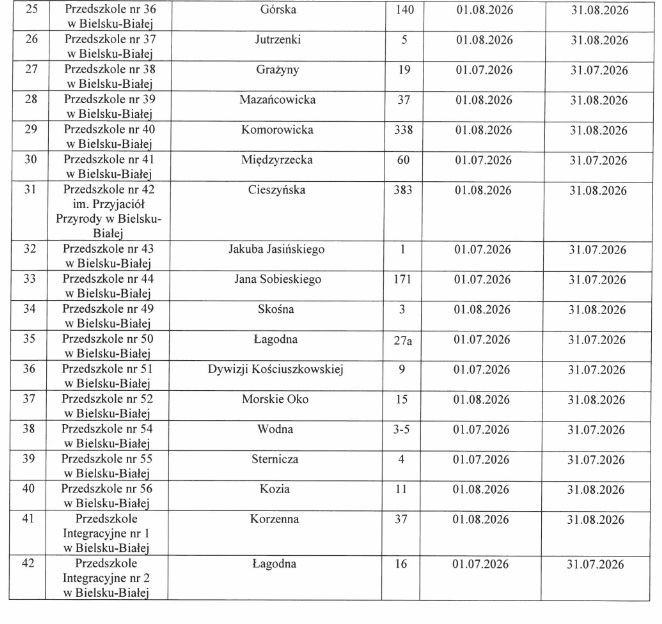 W miesiącu lipcu i sierpniu 2026 r., rodzice będą mieli możliwość skorzystania z opieki przedszkolnej we wskazanych w ww. zarządzeniu placówkach.