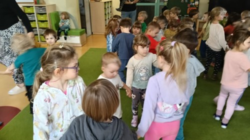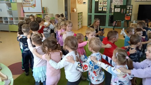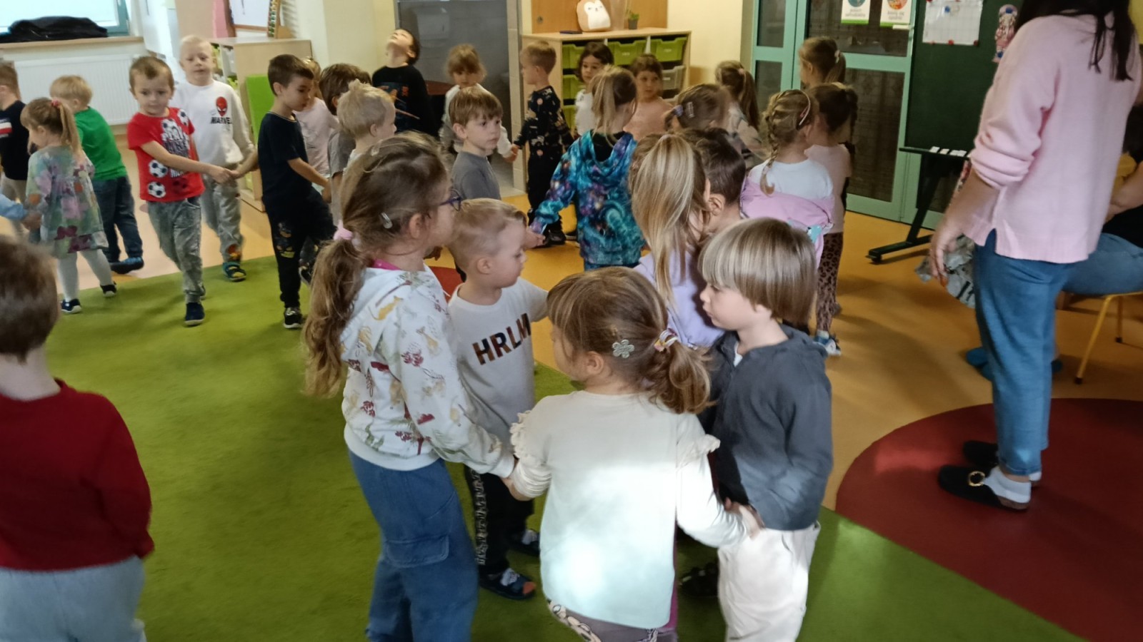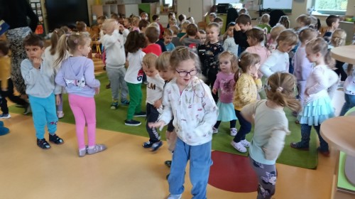 Duszki wraz z grupami młodszymi uczestniczyły w spotkaniu muzycznym prowadzonym przez Agencję Artystyczną Metrum – Forte. Podczas spotkania przedszkolaki wybrały się w muzyczną podróż z biegiem Wisły i poznały min. muzykę góralską i śląską. Tańczyły trojaka i kujawiaka, a także wysłuchały hejnału mariackiego granego na trąbce. To była bardzo ciekawa muzyczna wyprawa po naszym kraju.