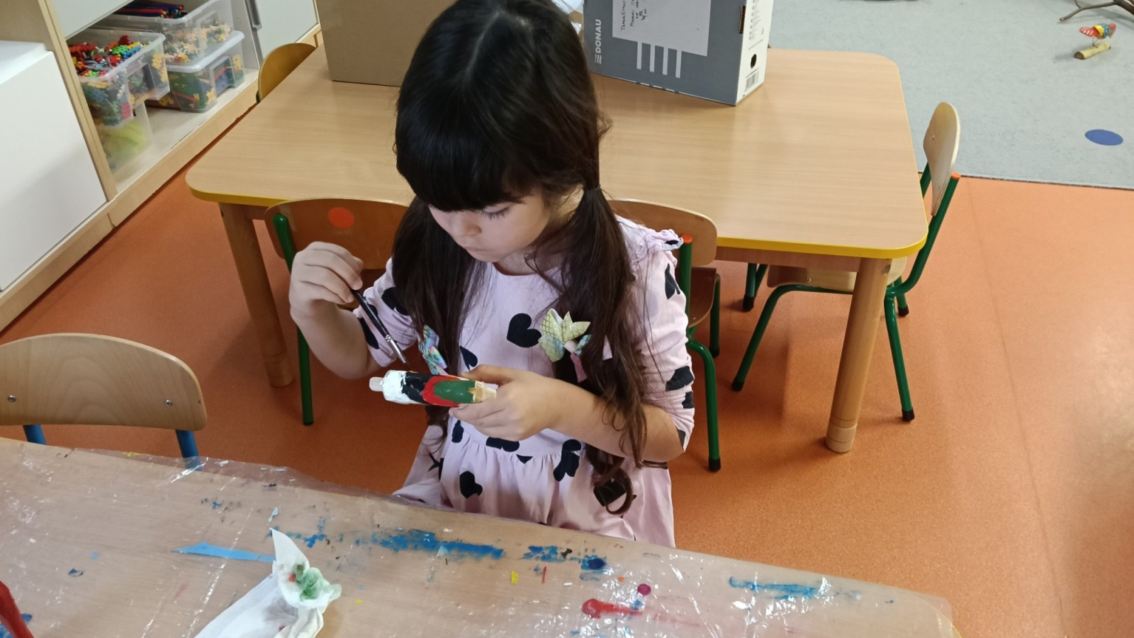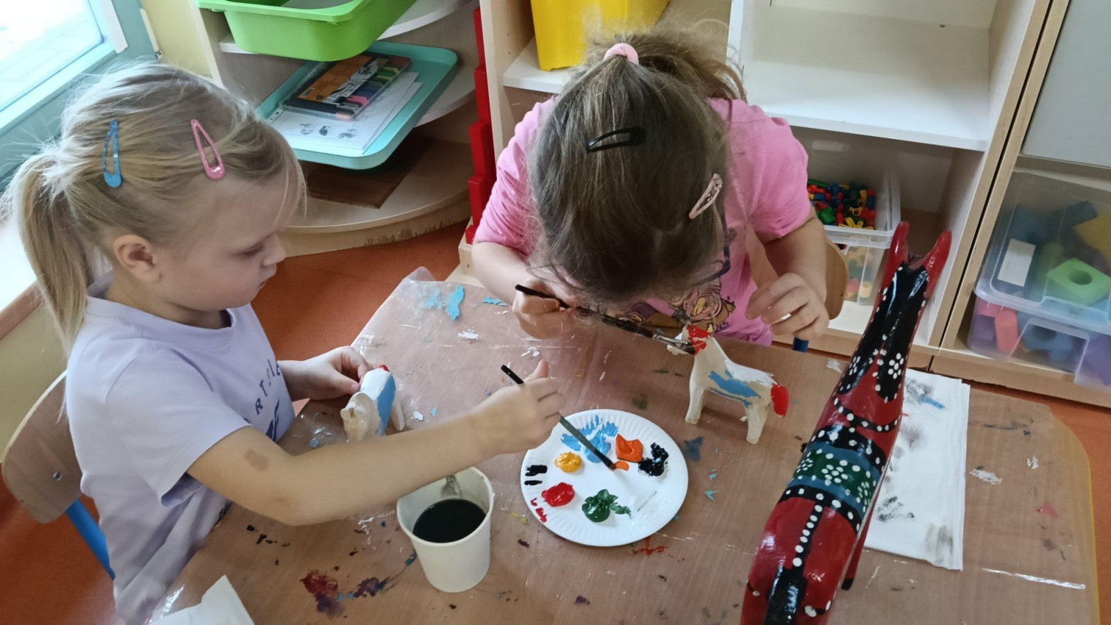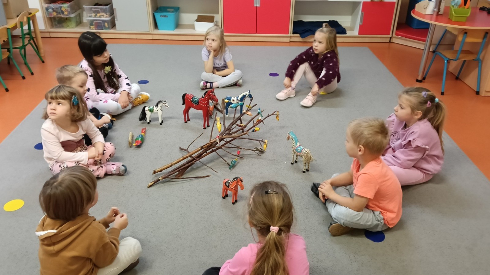 Dzieci oglądały niezwykle urocze drewniane zabawki: ptaszki i koniki. W ramach warsztatów prowadzonych przez Panią Anetę z Regionalnego Ośrodka Kultury w Bielsku-Białej przedszkolaki miały też możliwość wykonania swojego kolorowego konika. Dzieci były zachwycone. Nasze piękne koniki powędrują na wystawę podsumowującą realizację projektu Beskidzka Szkoła Folkloru.