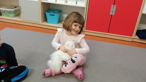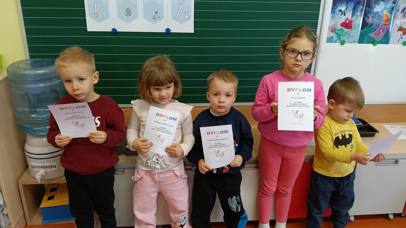 Naszą imprezę zakończyło „głaskanie kotka” i rozdanie pamiątkowych dyplomów, a wykonane prace zostały umieszczone na wystawce dla rodziców.