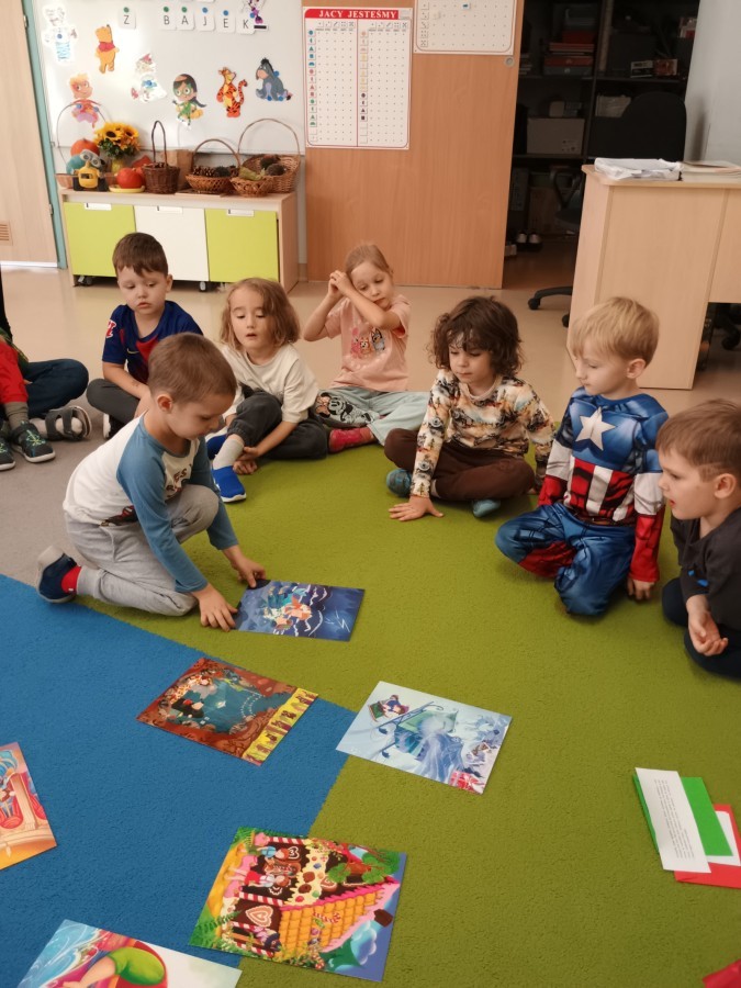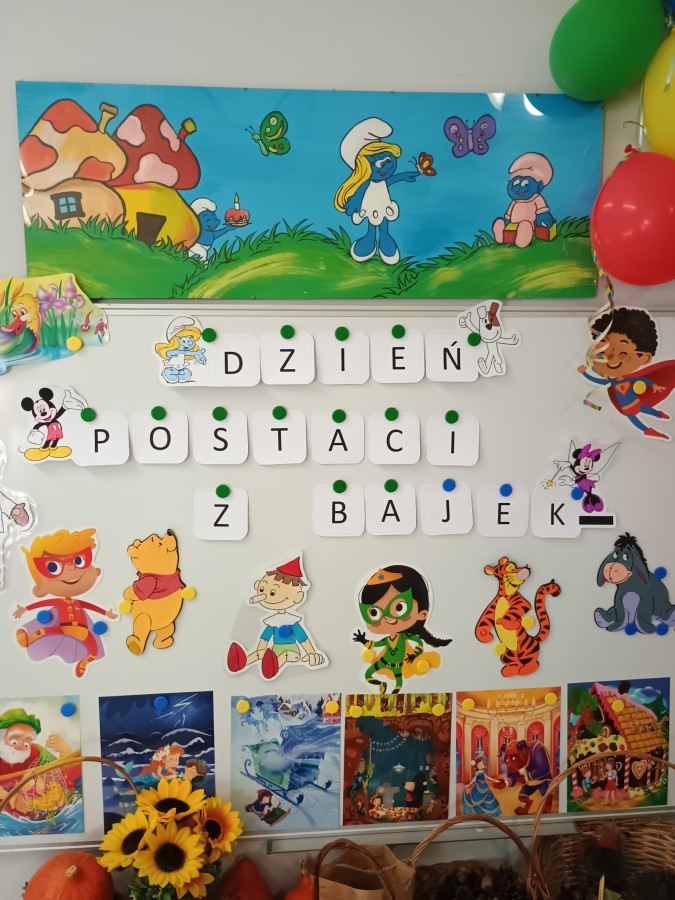 5 listopada obchodziliśmy Międzynarodowy Dzień Postaci z bajek. Przedszkolaki z grupy Smerfów opowiadały o swoich ulubionych bohaterach bajkowych i rozwiązywały zagadki z fragmentami wybranych bajek. Była też gra memo z postaciami z Bielskiego Studia Filmów Rysunkowych.