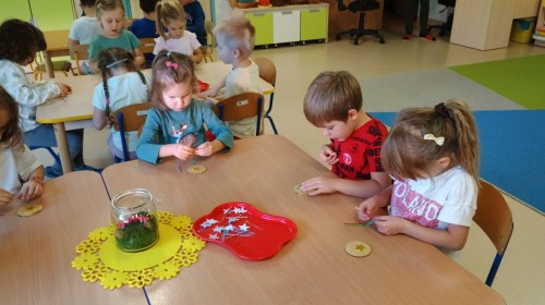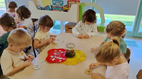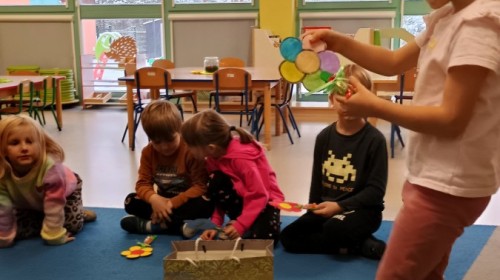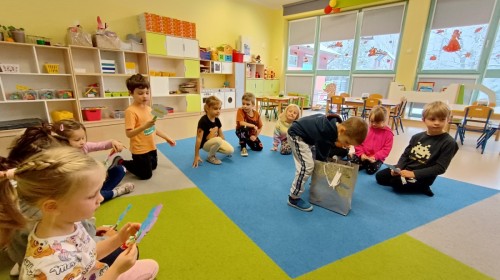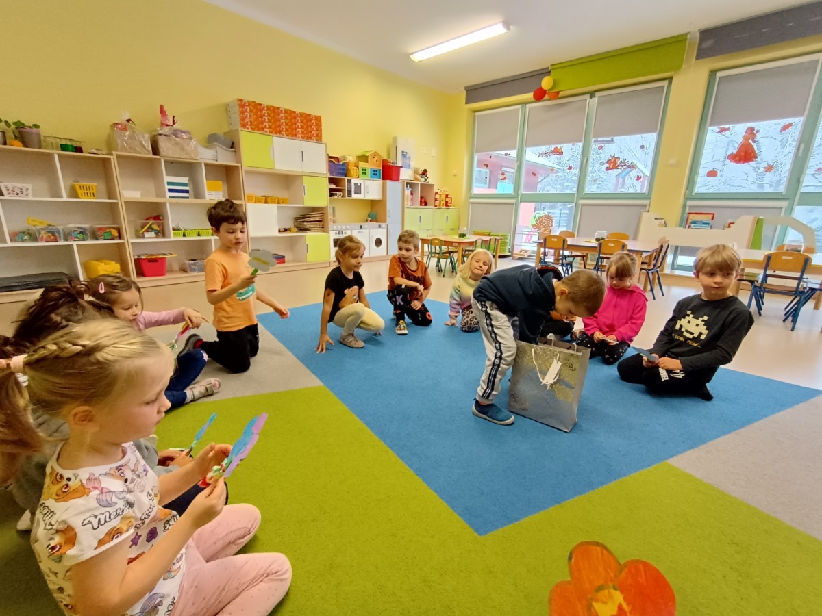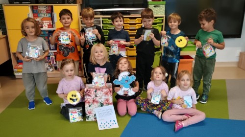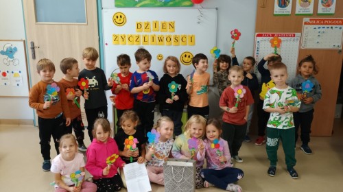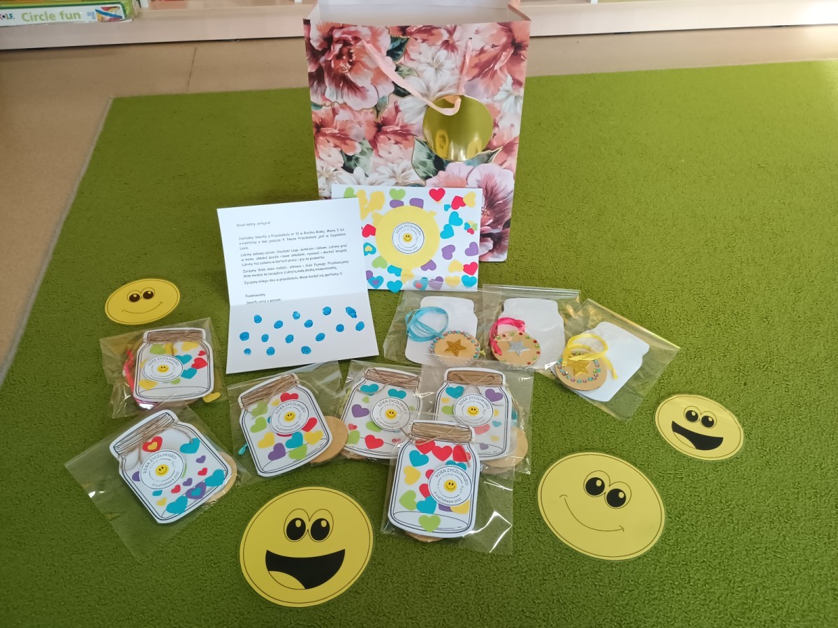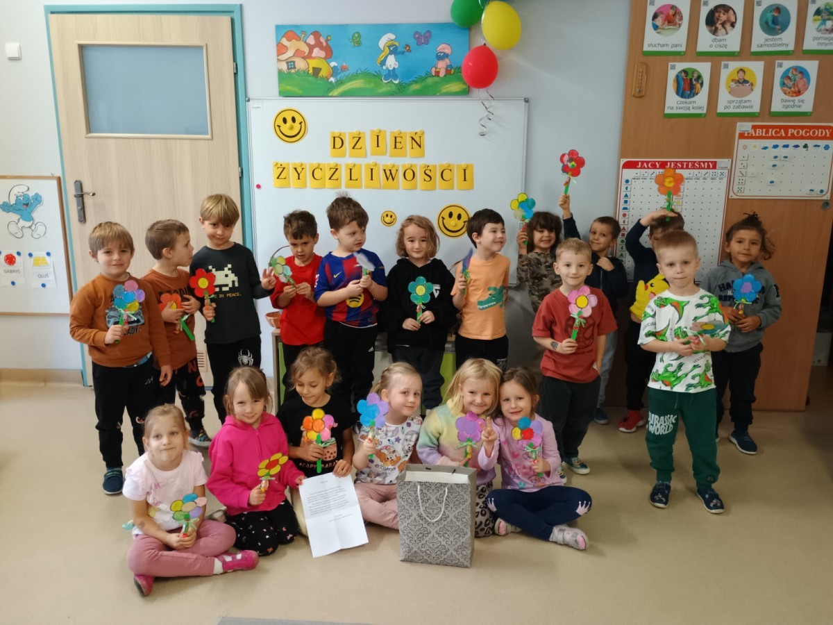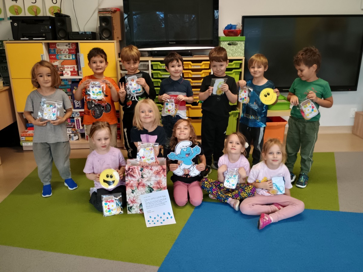Smerfy wzięły udział w międzyprzedszkolnej wymianie w ramach Dnia Życzliwości. Przygotowały medale z niespodzianką i słoiczki serdeczności dla dzieci z grupy Pracowitych Pszczółek z Przedszkola 36 w Bielsku-Białej, a zostały obdarowane własnoręcznie malowanymi kwiatkami ze słodką niespodzianką.