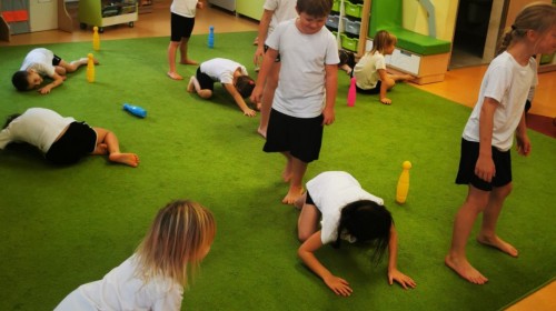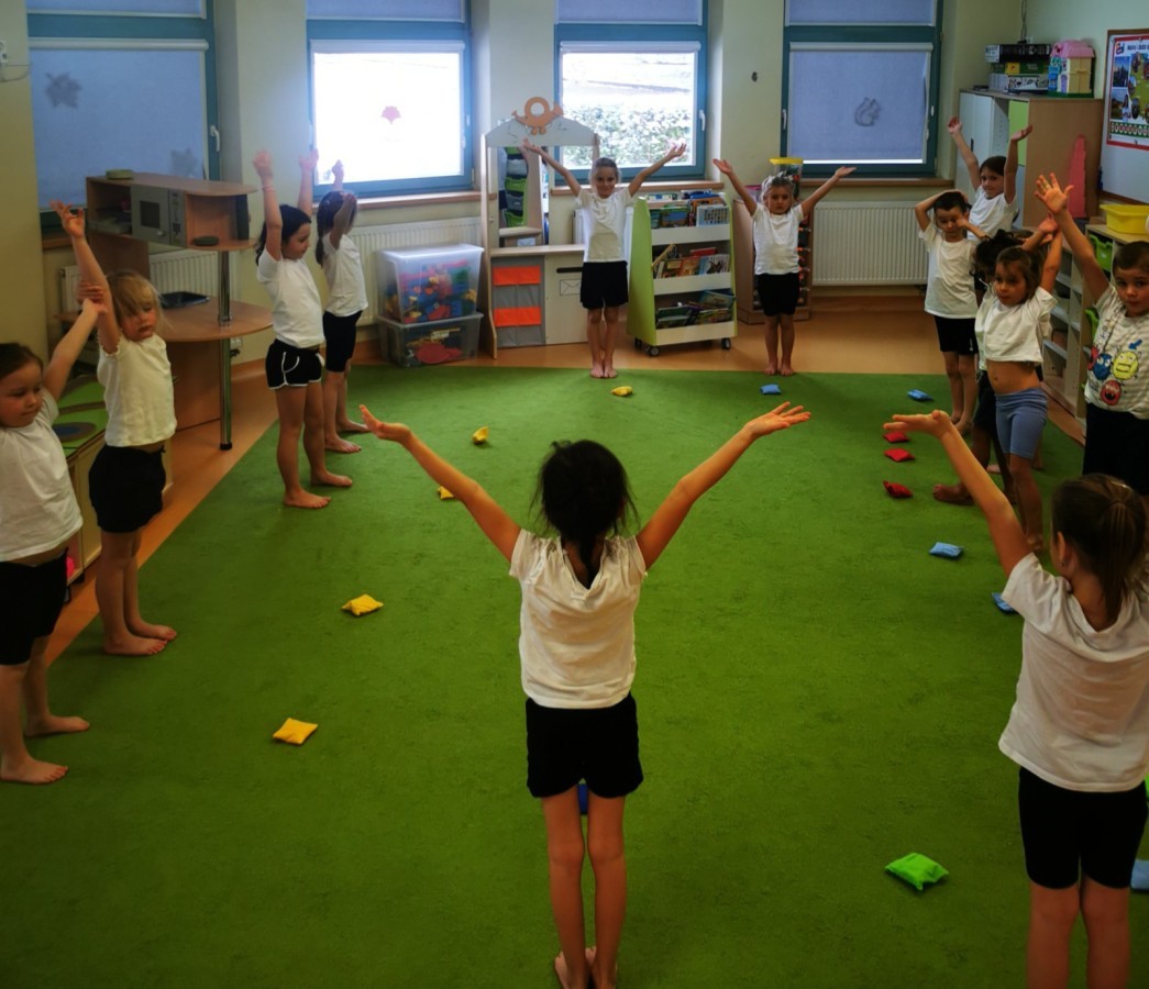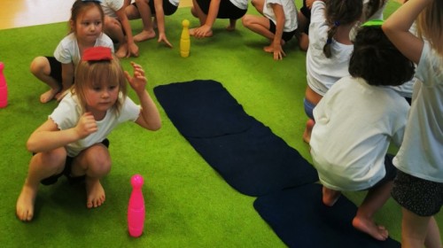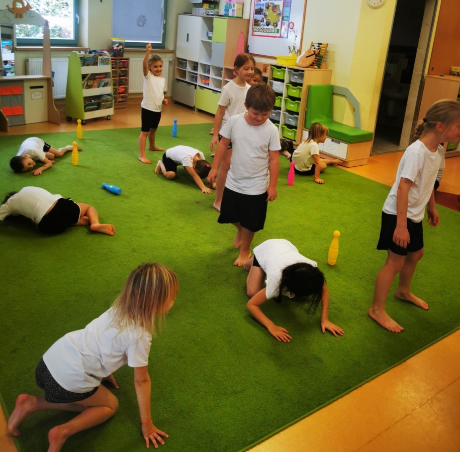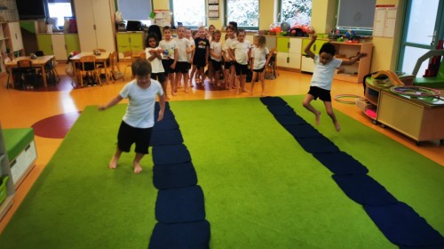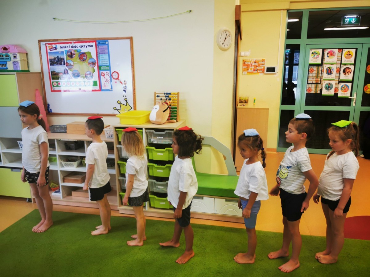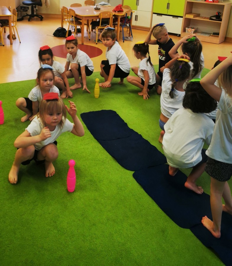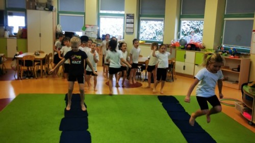 Legendy polskie by艂y tematem przewodnim zaj臋膰 sportowych w ramach realizacji Programu Ogólnopolskiego. Dzieci wzmacnia艂y mi臋艣nie postawne, rozwija艂y sprawno艣膰 ogóln膮, balans cia艂a, szybko艣膰 i celno艣膰 poprzez 膰wiczenia z bohaterami polskich legend. "Smok wawelski" 艂apa艂 owieczki, "Bazyliszek" wzrokiem zamienia艂 dzieci w kamie艅, "Pan Twardowski" zaprosi艂, aby celowa膰 do ksi臋偶yca, a na koniec "Z艂ote kaczki" w koronach z woreczków p艂ywa艂y slalomem po stawie i rzeczce.