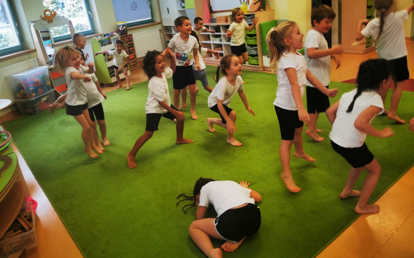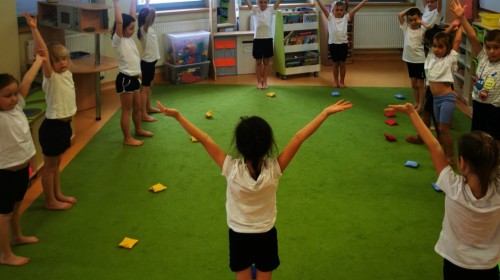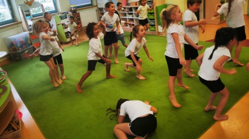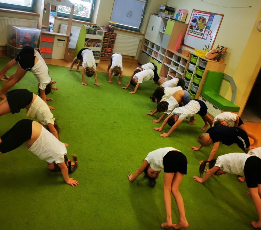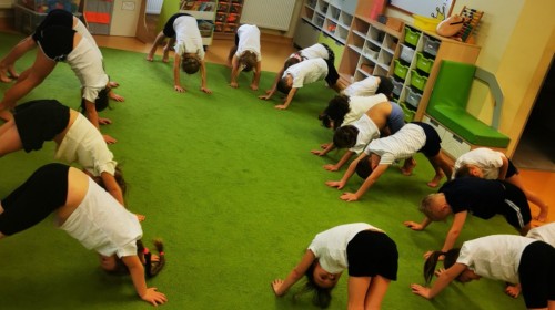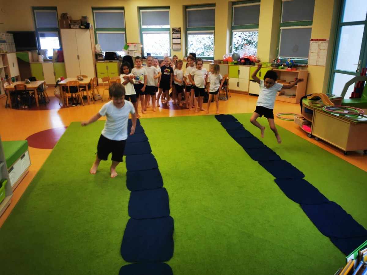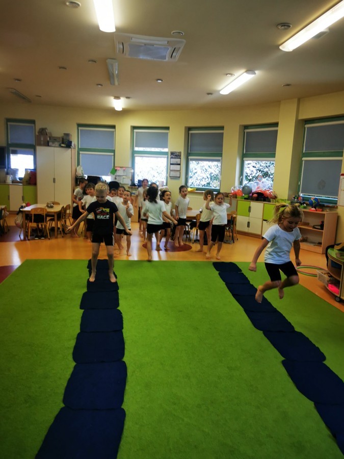 Legendy polskie by艂y tematem przewodnim zaj臋膰 sportowych w ramach realizacji Programu Ogólnopolskiego. Dzieci wzmacnia艂y mi臋艣nie postawne, rozwija艂y sprawno艣膰 ogóln膮, balans cia艂a, szybko艣膰 i celno艣膰 poprzez 膰wiczenia z bohaterami polskich legend. "Smok wawelski" 艂apa艂 owieczki, "Bazyliszek" wzrokiem zamienia艂 dzieci w kamie艅, "Pan Twardowski" zaprosi艂, aby celowa膰 do ksi臋偶yca, a na koniec "Z艂ote kaczki" w koronach z woreczków p艂ywa艂y slalomem po stawie i rzeczce.