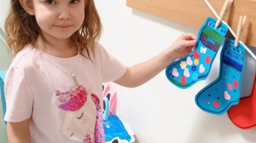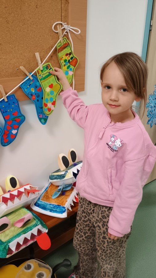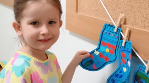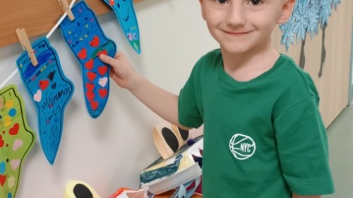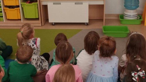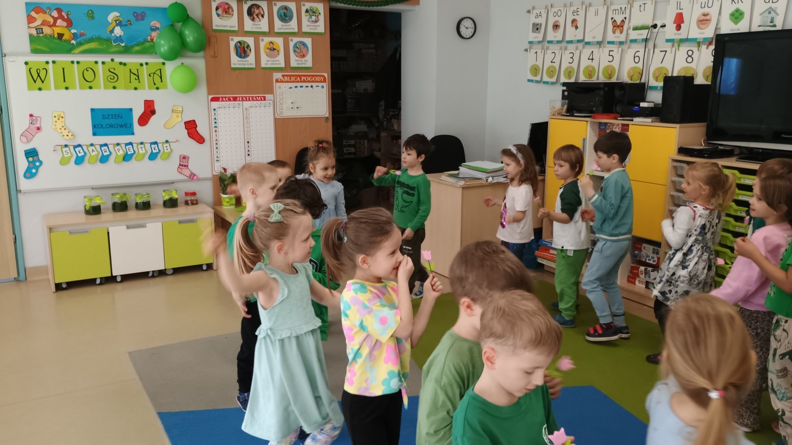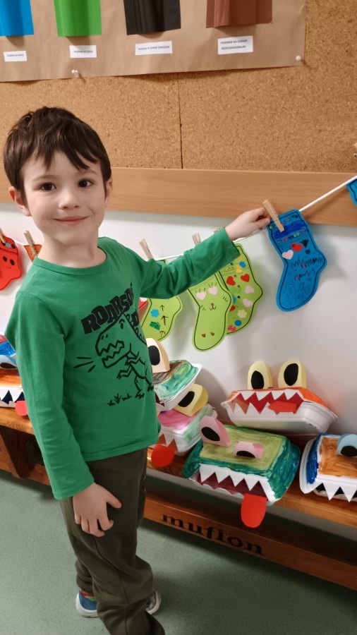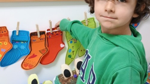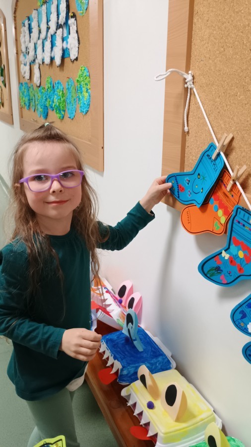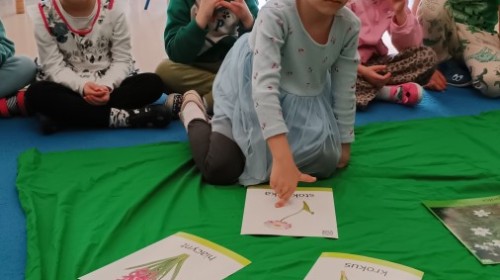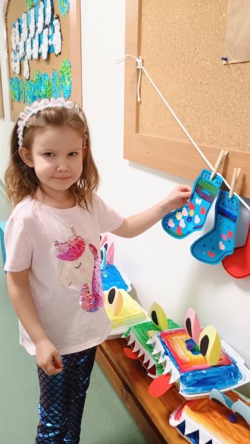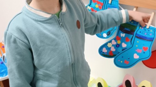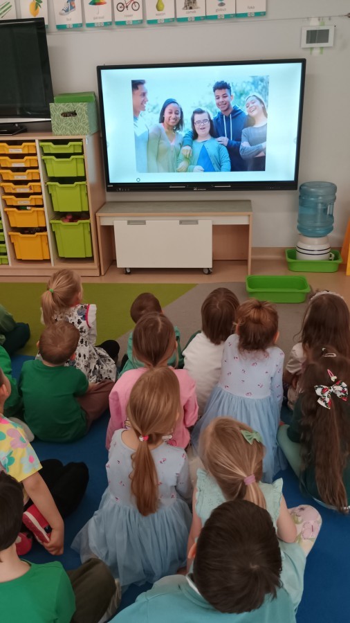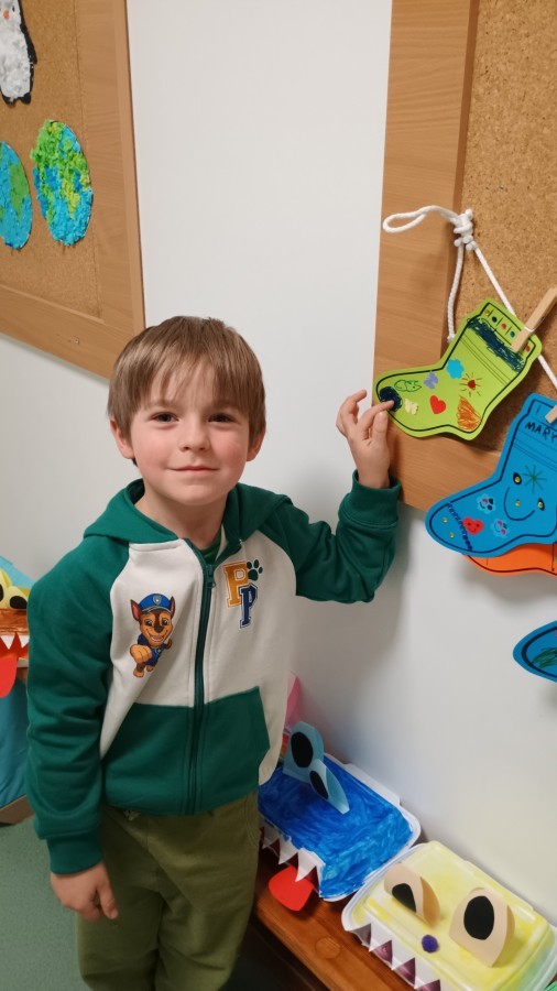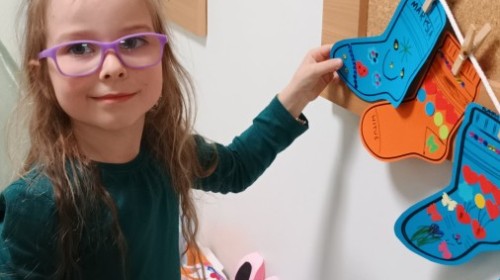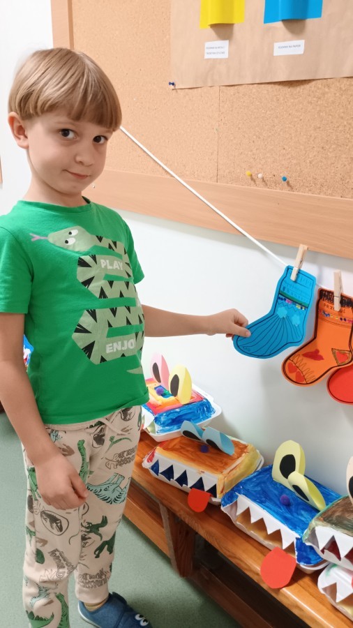 Były zagadki ze zwiastunami wiosny, wiosenne zabawy w sali i w ogrodzie oraz piosenka, a następnie przedszkolaki poznały ideę dnia kolorowej skarpetki, który ma na celu budowanie empatii, tolerancji i solidarności z osobami z Zespołem Downa, naukę akceptacji różnic i zrozumienia niepełnosprawności. Na zakończenie każdy wykonał wyjątkową skarpetkę.