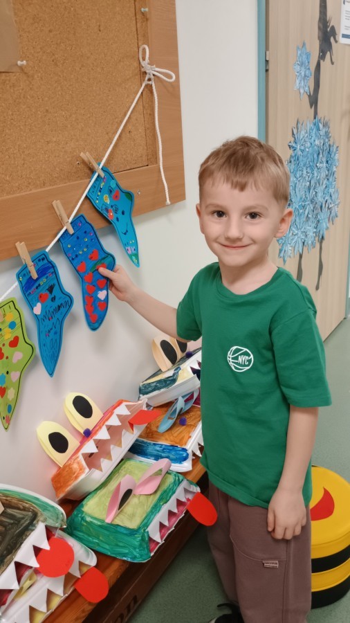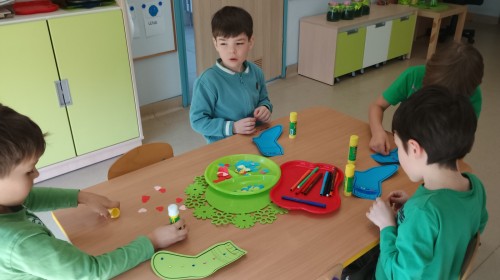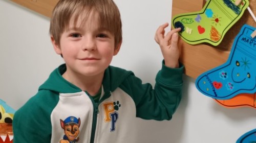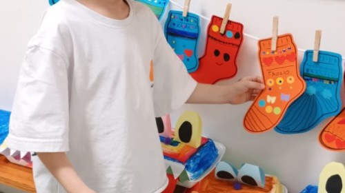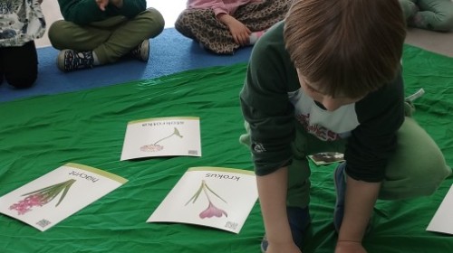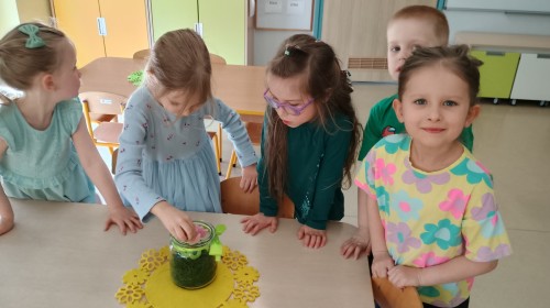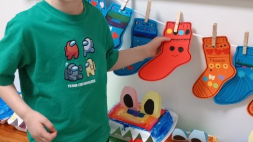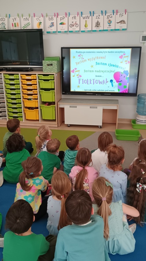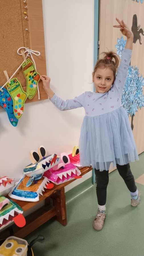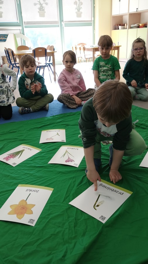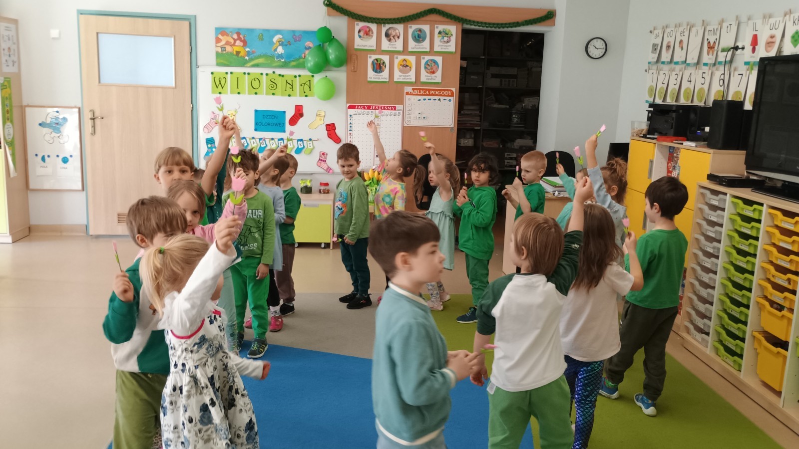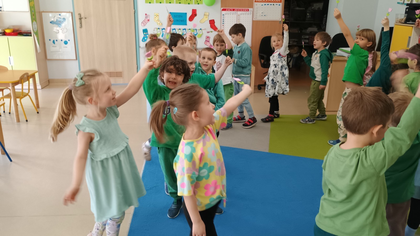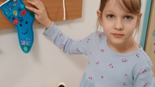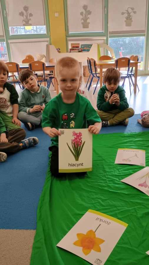 Były zagadki ze zwiastunami wiosny, wiosenne zabawy w sali i w ogrodzie oraz piosenka, a następnie przedszkolaki poznały ideę dnia kolorowej skarpetki, który ma na celu budowanie empatii, tolerancji i solidarności z osobami z Zespołem Downa, naukę akceptacji różnic i zrozumienia niepełnosprawności. Na zakończenie każdy wykonał wyjątkową skarpetkę.