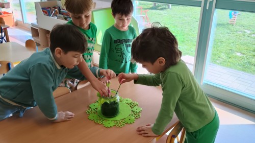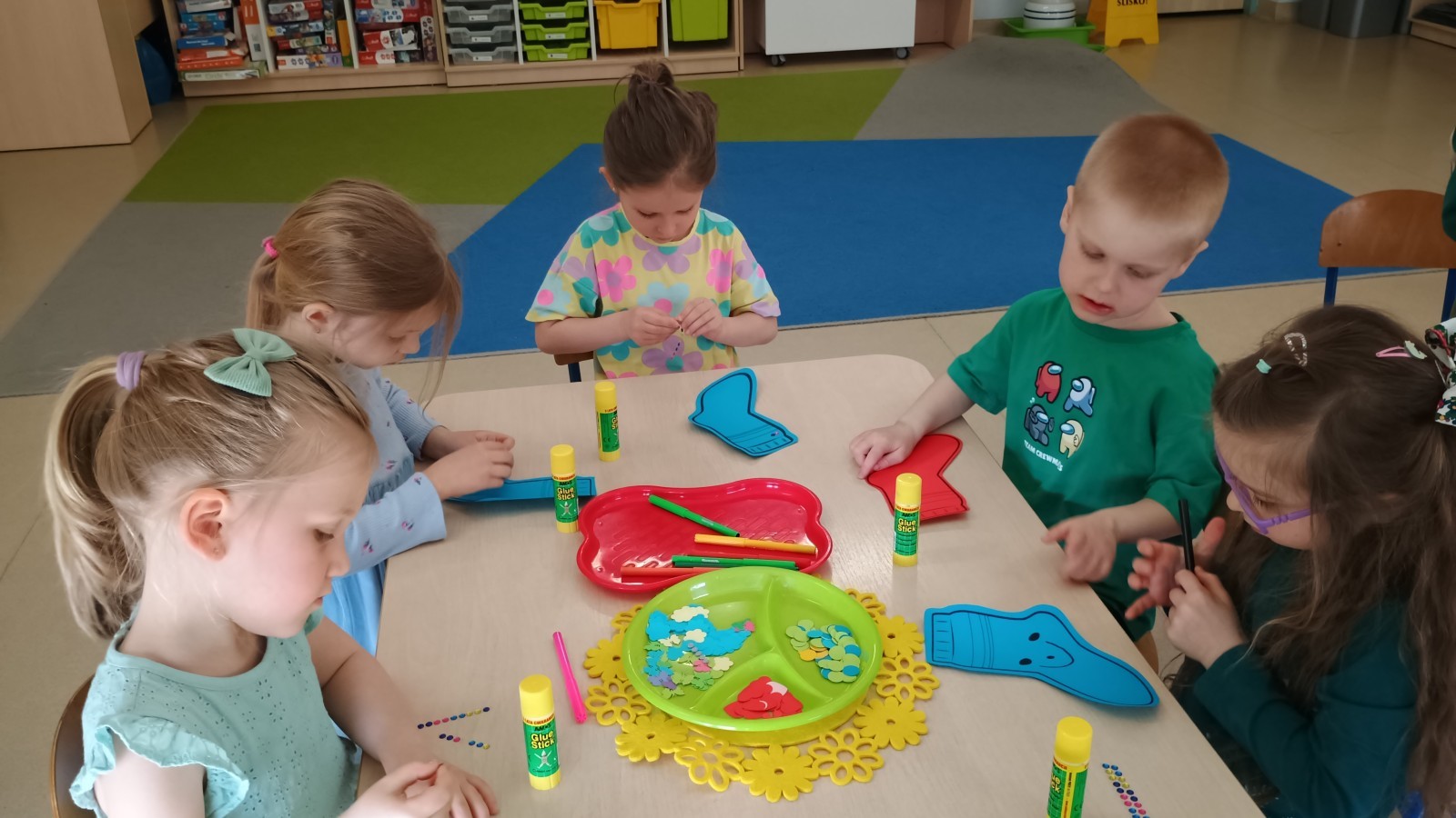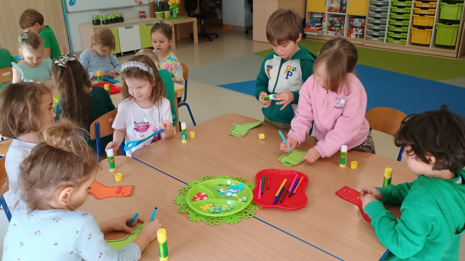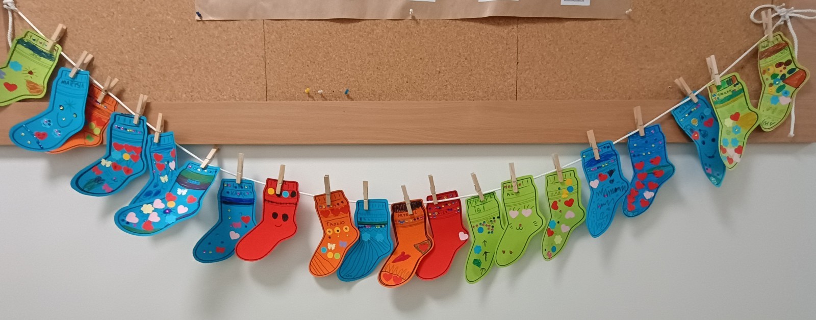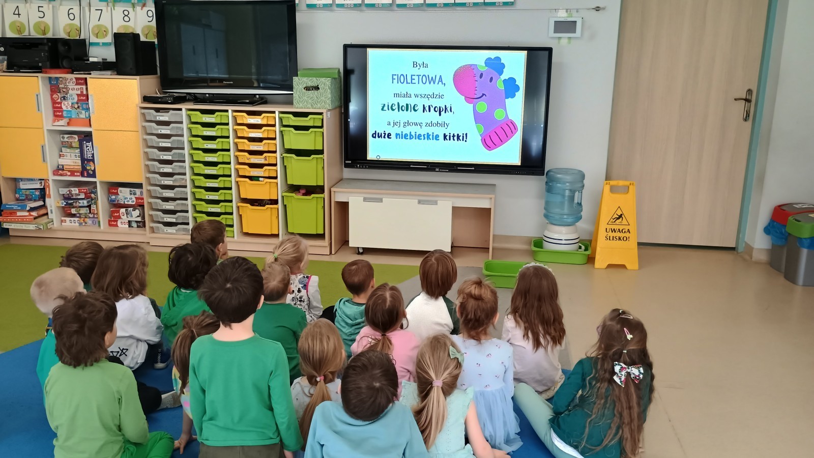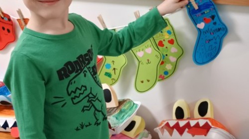 Były zagadki ze zwiastunami wiosny, wiosenne zabawy w sali i w ogrodzie oraz piosenka, a następnie przedszkolaki poznały ideę dnia kolorowej skarpetki, który ma na celu budowanie empatii, tolerancji i solidarności z osobami z Zespołem Downa, naukę akceptacji różnic i zrozumienia niepełnosprawności. Na zakończenie każdy wykonał wyjątkową skarpetkę.