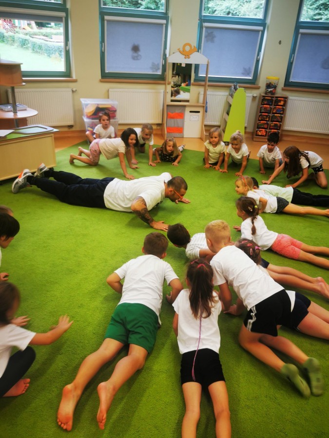 W tym tygodniu Muchomory pozna艂y zawód fizjoterapeuty i trenera sportowego. Dzi臋kujemy, 偶e tata Zacharego zorganizowa艂 dla nas profesjonalny trening i opowiedzia艂 o swoim zawodzie 馃檪 Oczywi艣cie wszyscy chc膮 zosta膰 trenerami po takiej zach臋cie.