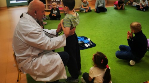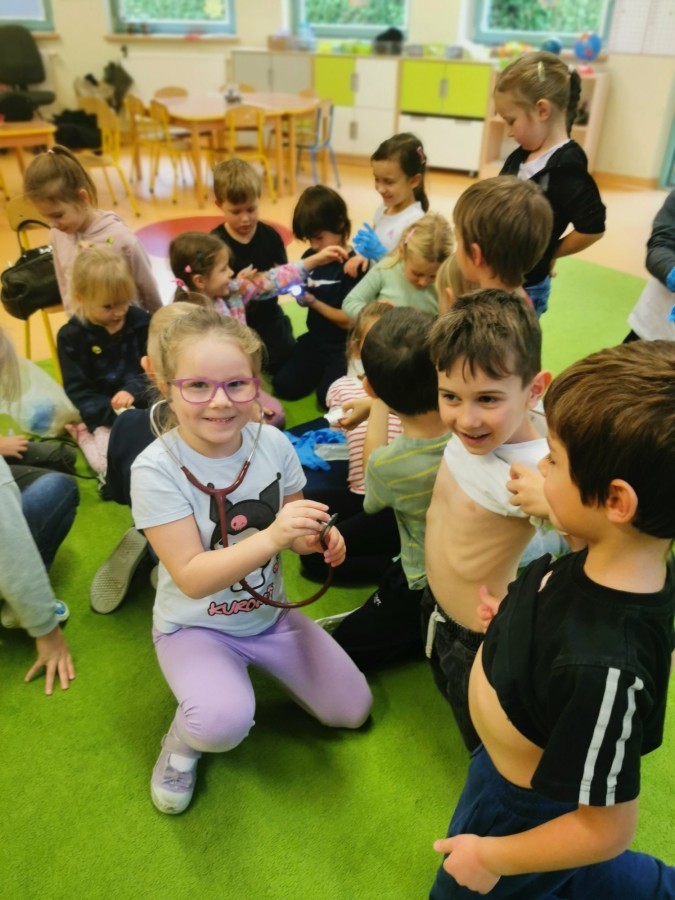 Dzi臋ki 偶yczliwo艣ci dziadka Franusia, który by艂 uprzejmy odwiedzi膰 nasze przedszkole i opowiedzie膰 nam o swoim zawodzie, Muchomory pozna艂y zawód lekarza. To by艂a fantastyczna lekcja o pasji, która sta艂a si臋 sposobem na 偶ycie, a zacz臋艂a si臋 ju偶 we wczesnym dzieci艅stwie馃檪Po pasjonuj膮cych zaj臋ciach, na których dzieci mog艂y zaznajomi膰 si臋 z tajnikami zawodu oraz wcieli膰 si臋 w rol臋 lekarza okaza艂o si臋, 偶e wszyscy chc膮 zosta膰 lekarzami 馃檪馃殤