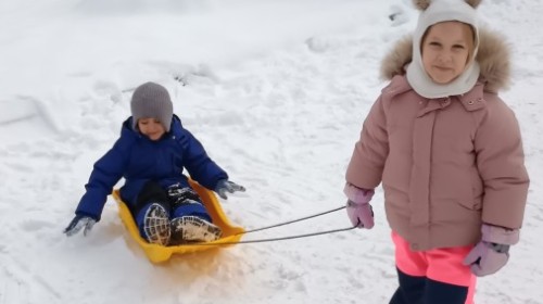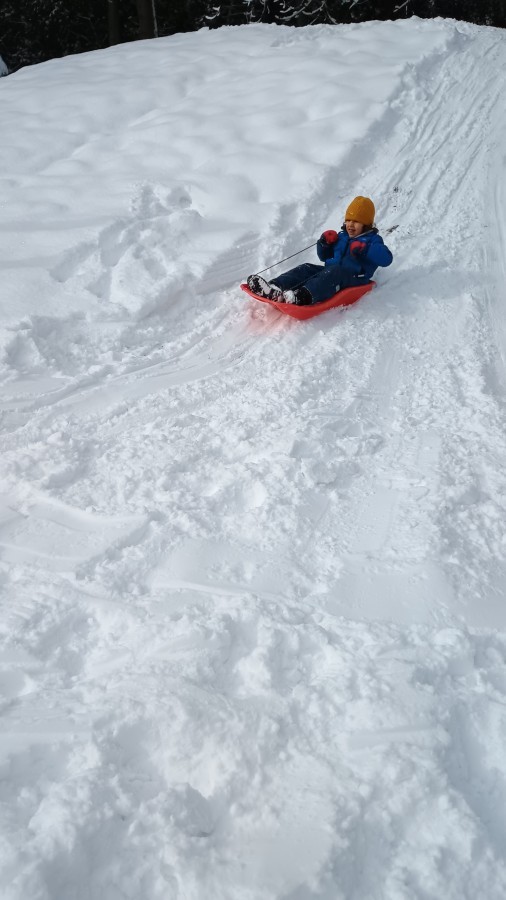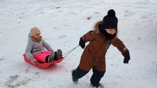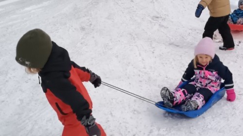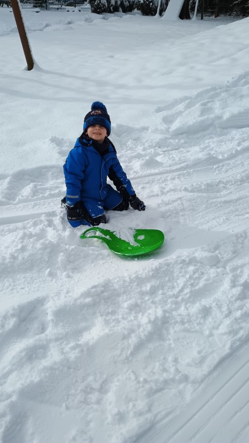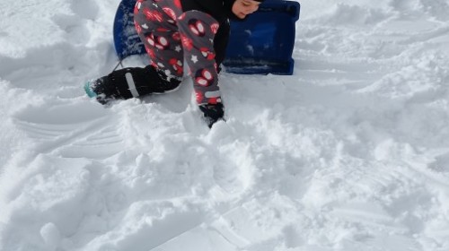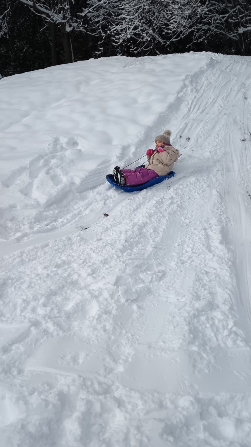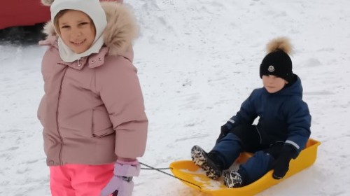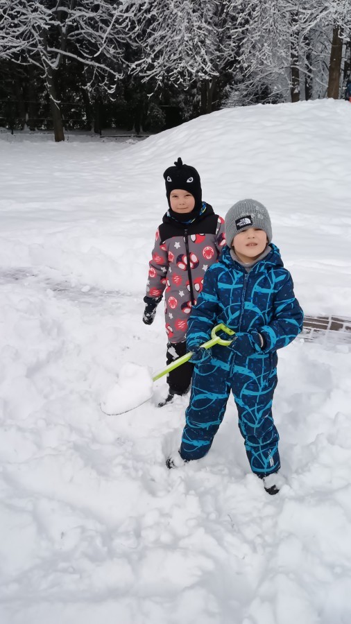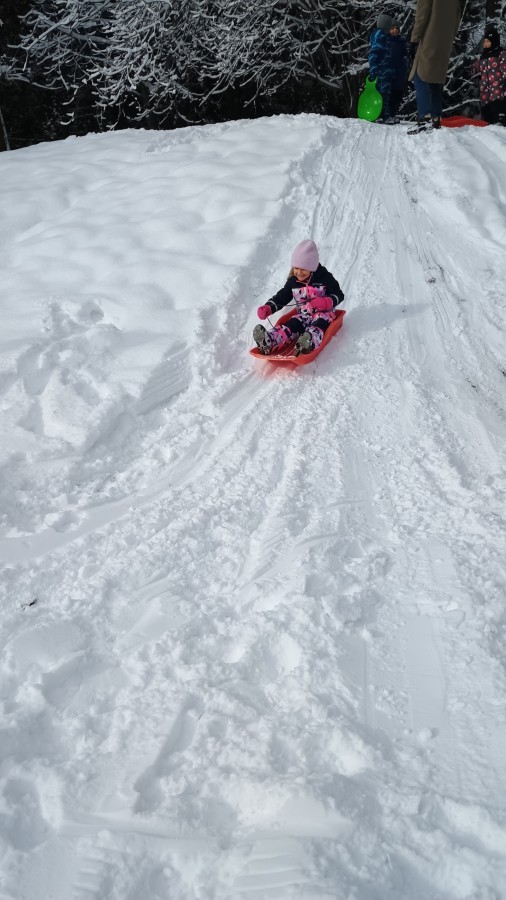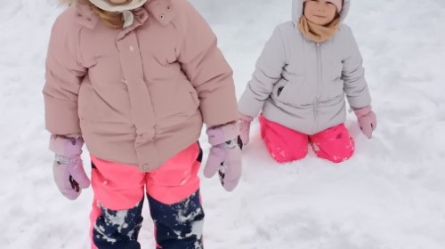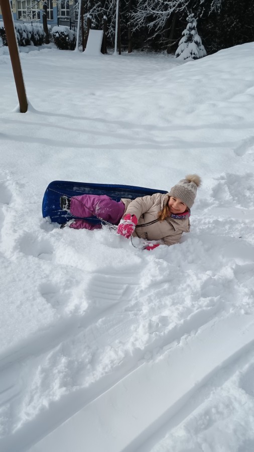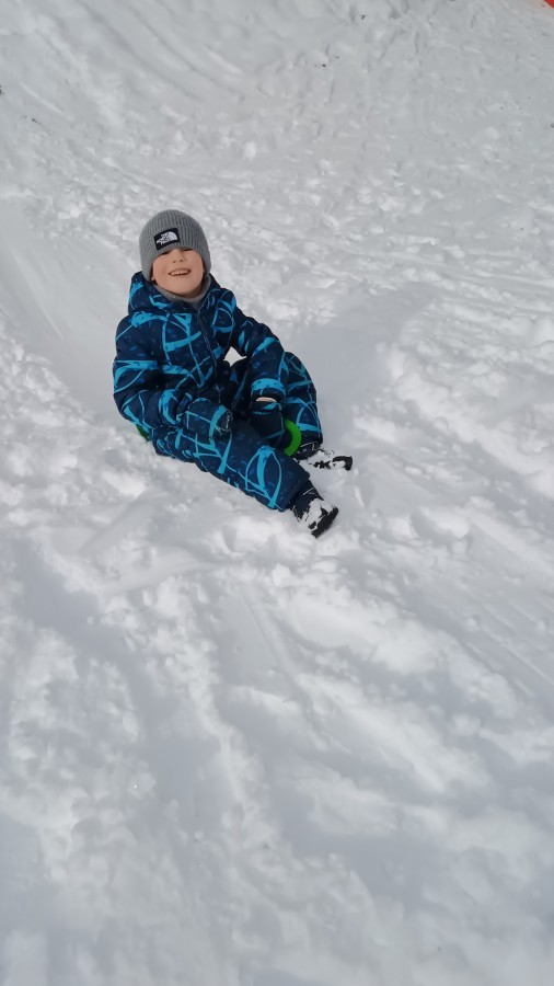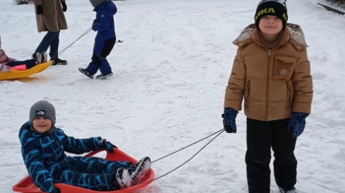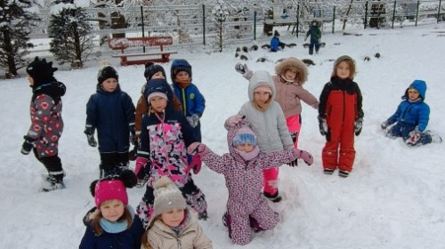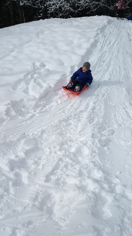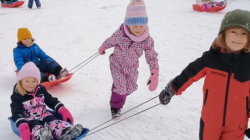 Korzystając z zimowej aury Smerfy wzięły udział w zajęciach z integracji sensorycznej w ramach projektu unijnego na świeżym powietrzu. Była gimnastyczna rozgrzewka, jazda na sankach w parach, zjazdy z górki na ślizgach i sankach oraz śnieżne budowle.
