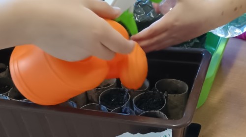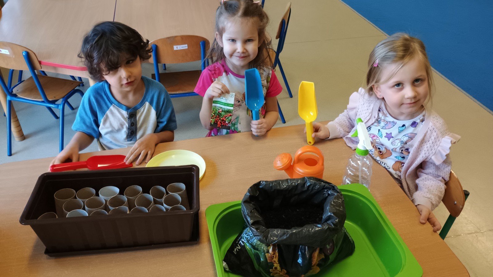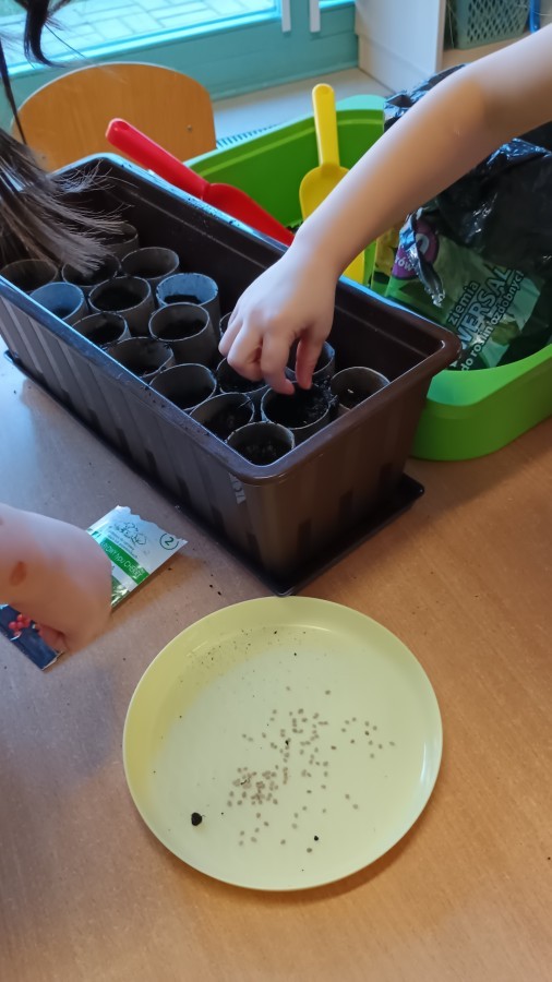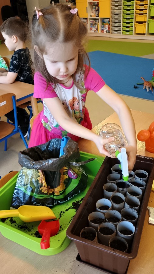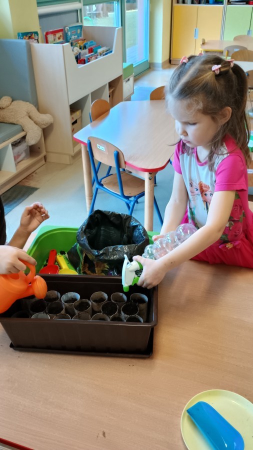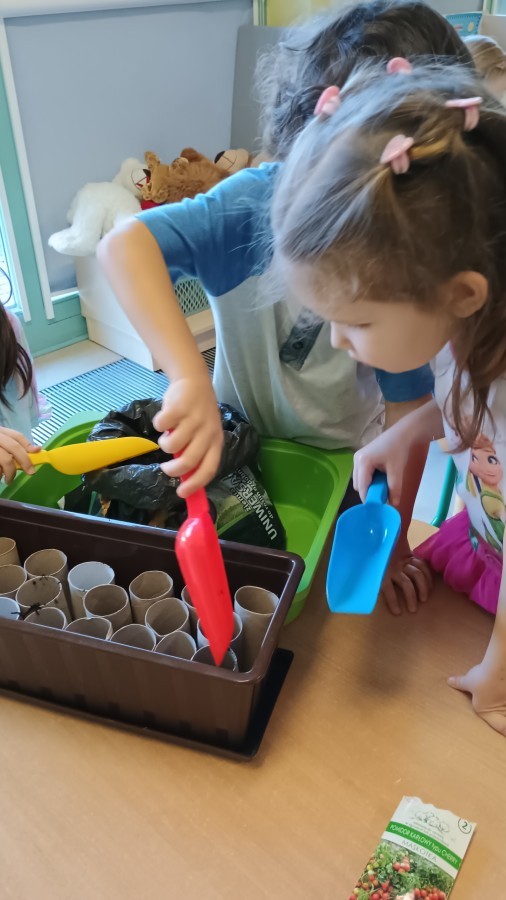 Smerfy w oczekiwaniu na wiosnę sprawdziły, co widać i słychać w naszej przedszkolnej szklarni. W ramach zadania ogrodniczego przygotowały ekologiczne mini-doniczki z tekturowych rolek, do których wysiały nasionka pomidorków koktajlowych. Gotowe sadzonki zostaną przeniesione do szklarni. Wkrótce przygotujemy kolejne sadzonki ziół i warzyw.