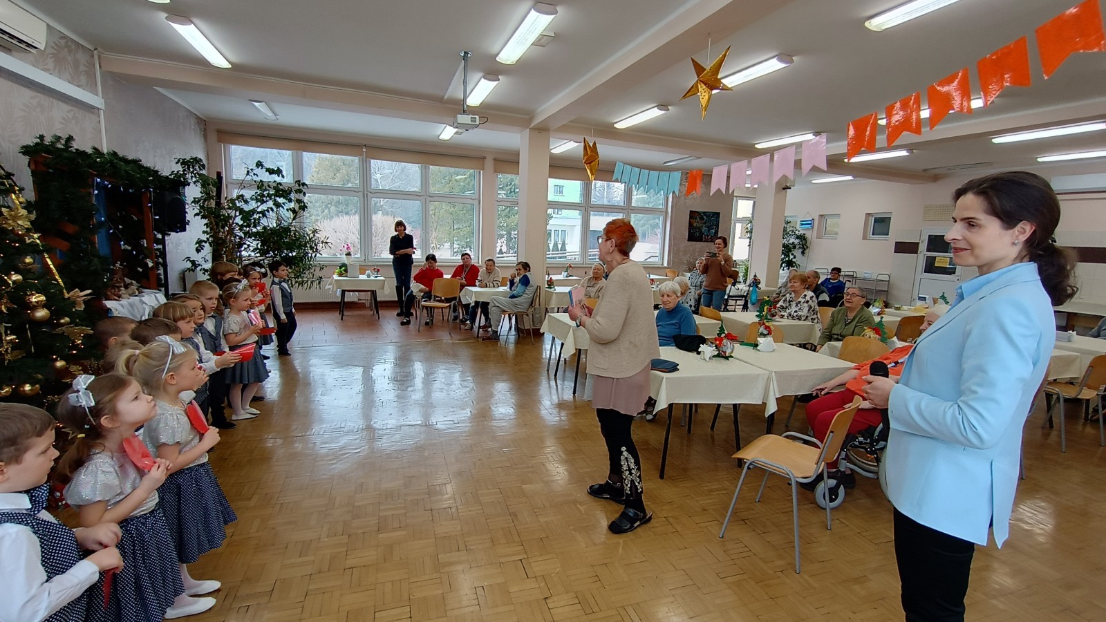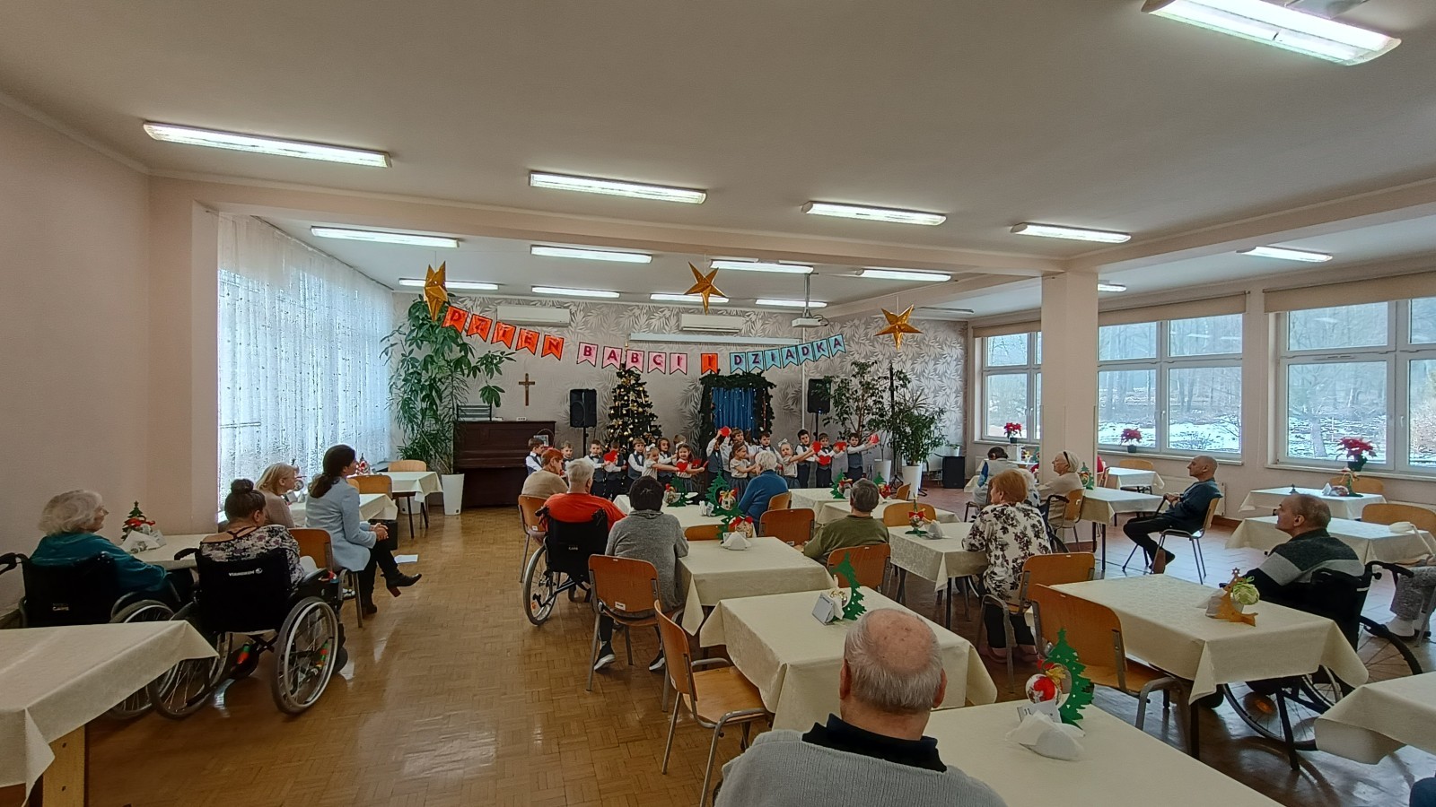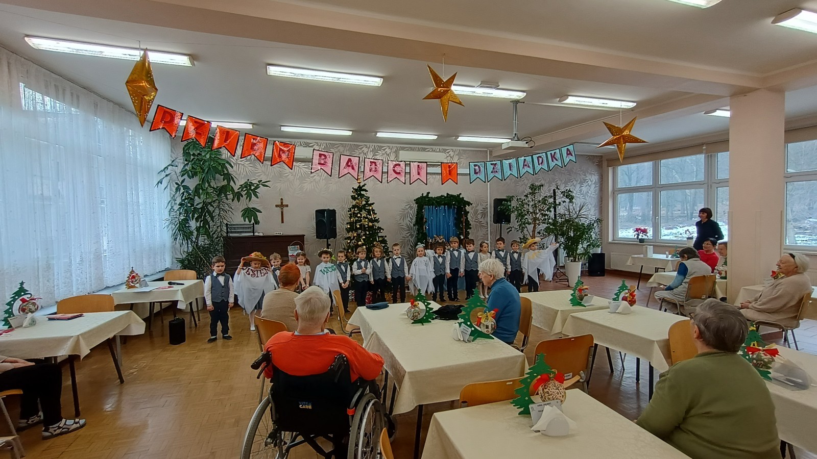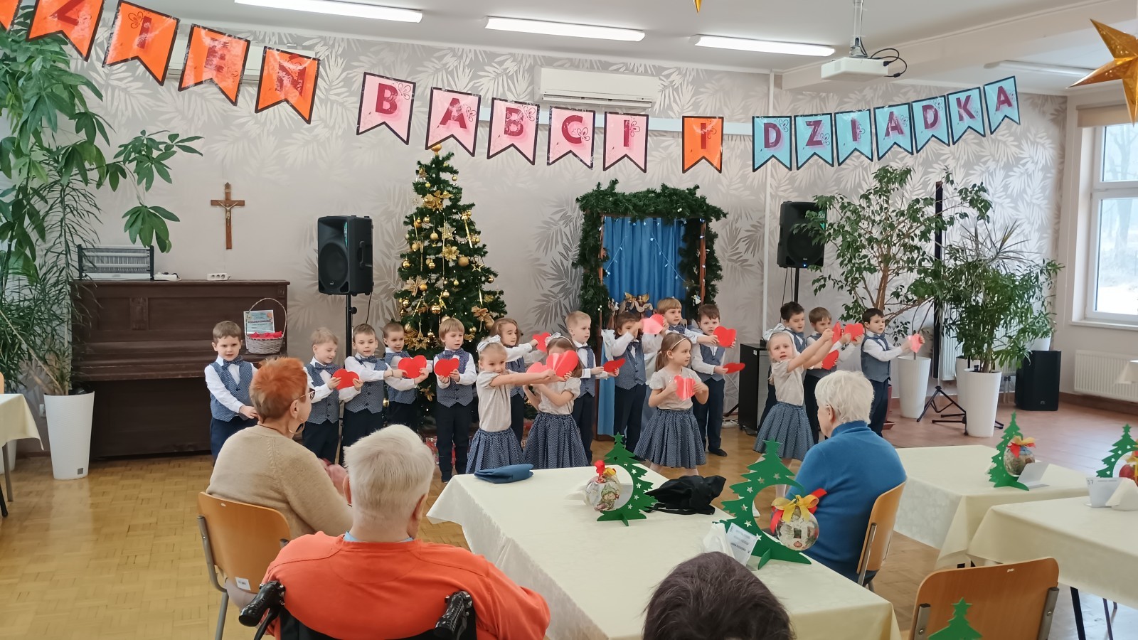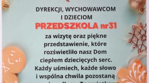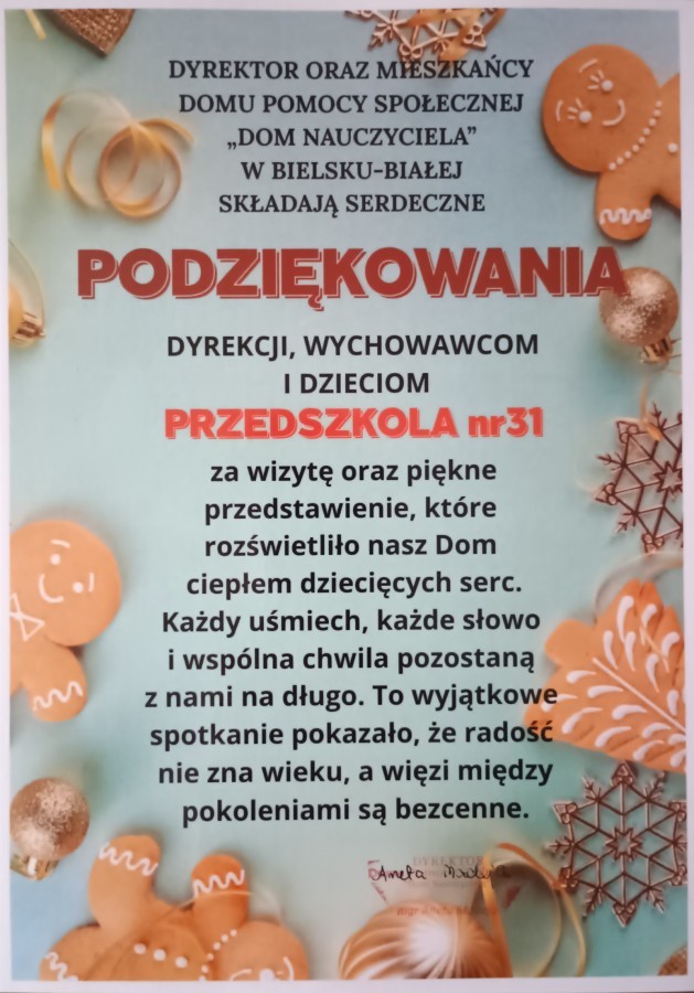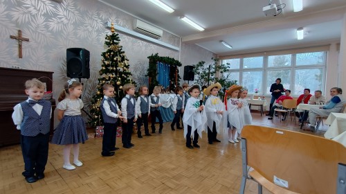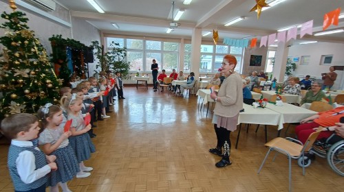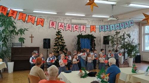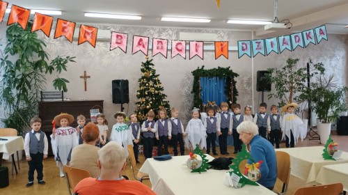 Smerfy wybrały się do pobliskiego Domu Nauczyciela i zaprezentowały program artystyczny z okazji Dnia Babci i Dziadka Seniorom. Było wiele uśmiechu, radości, ale również wzruszeń. Na zakończenie przedszkolaki podarowały laurki własnoręcznie wykonane przez młodszych kolegów z grupy Skrzatów.