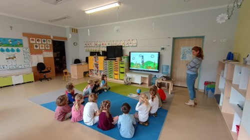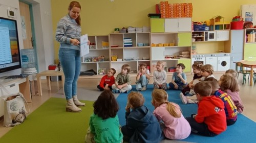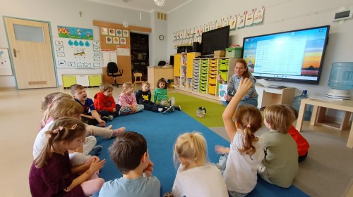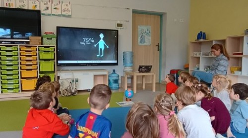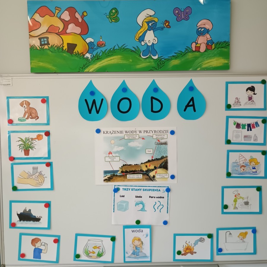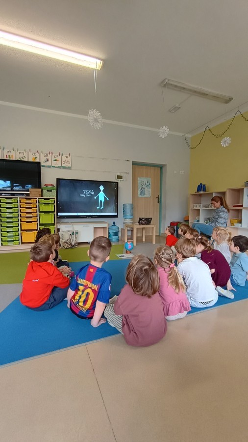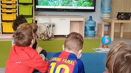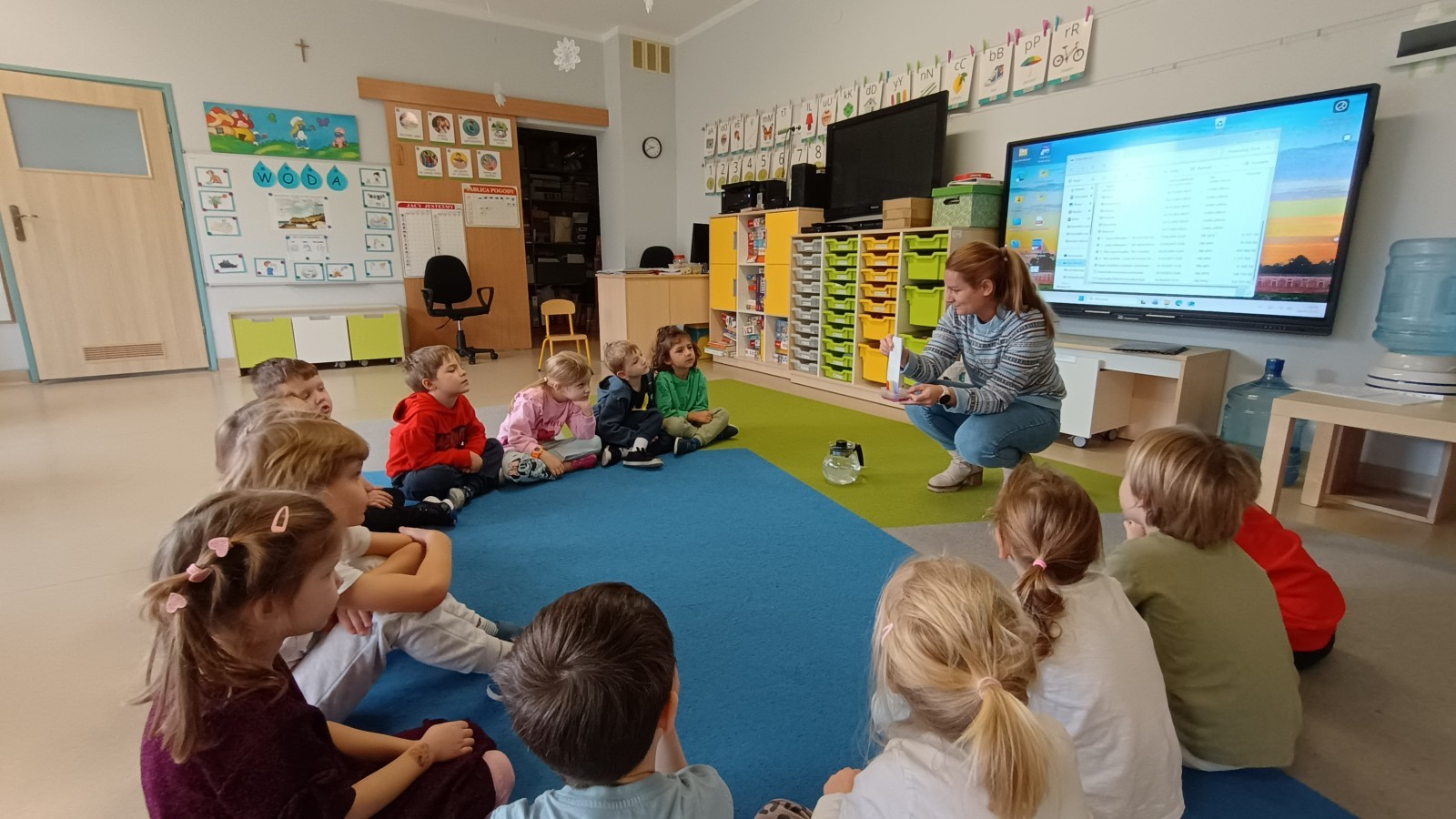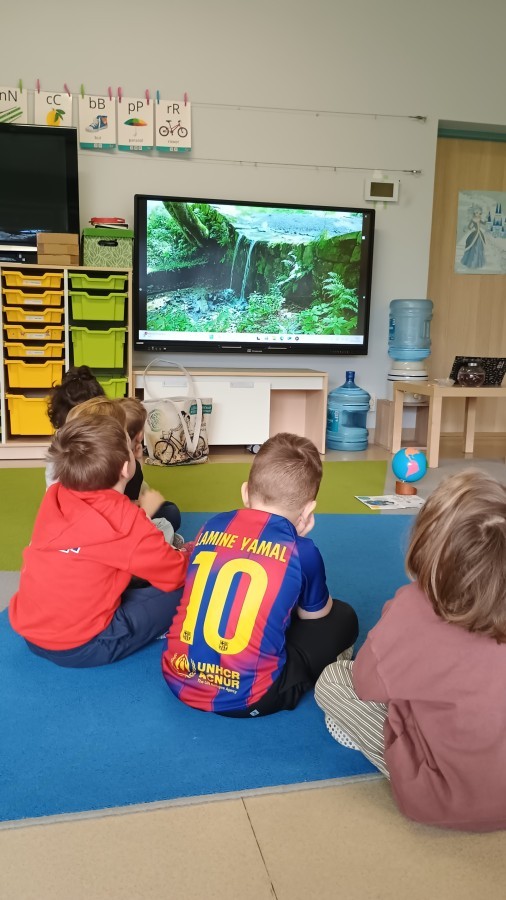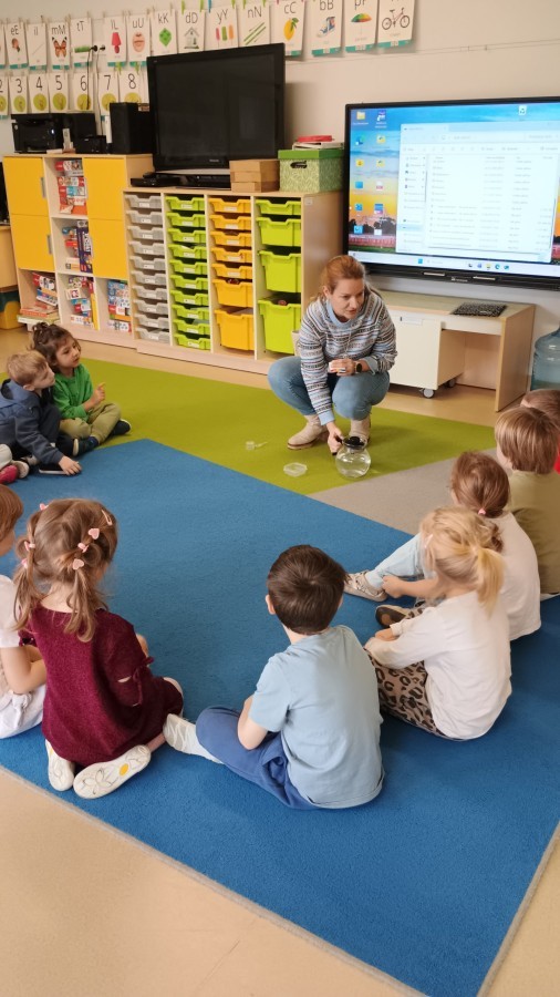W ramach realizacji zadań konkursowych "Szanuj energię, chroń klimat" Smerfy wzięły udział w spotkaniu z pracownikiem firmy AQUA S.A. Podczas zajęć dzieci utrwaliły wiedzę na temat właściwości wody i jej roli w środowisku oraz konieczności jej oszczędzania. Przedszkolaki wraz z Detektywem Kropelką poznały ciekawostki na temat wody dostarczanej w naszym mieście oraz miejsca, w którym woda jest oczyszczana.