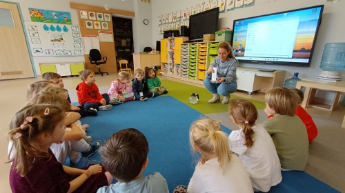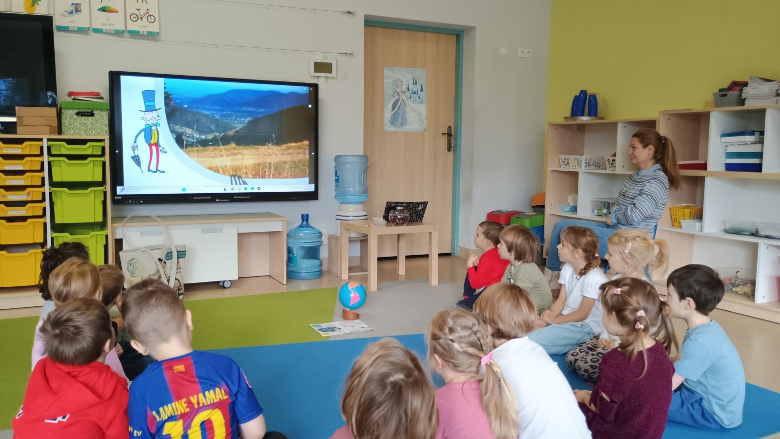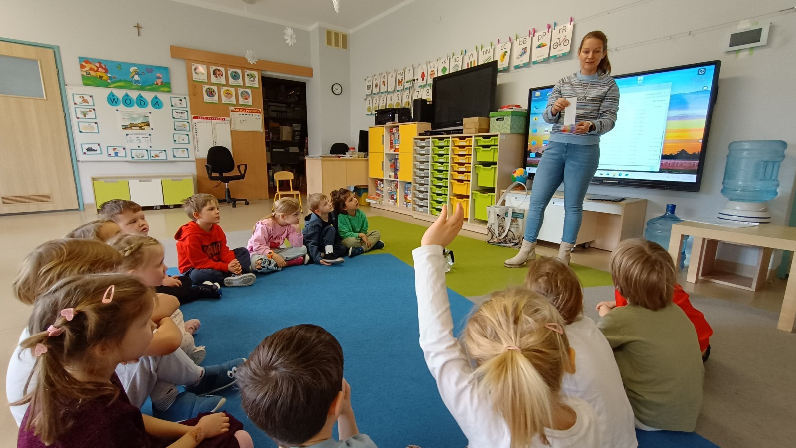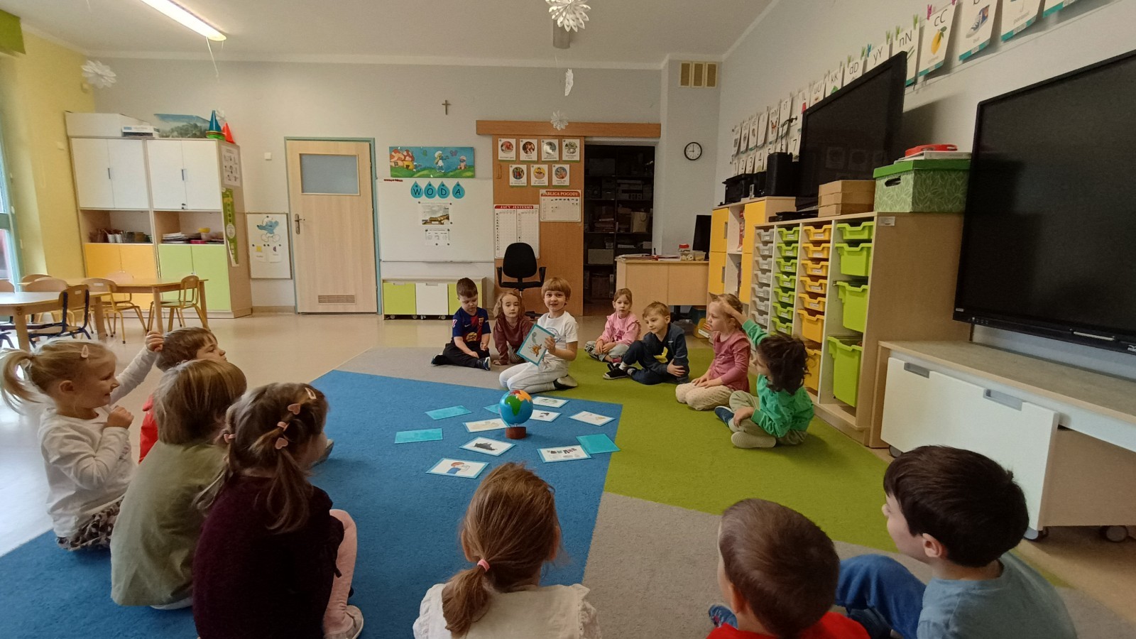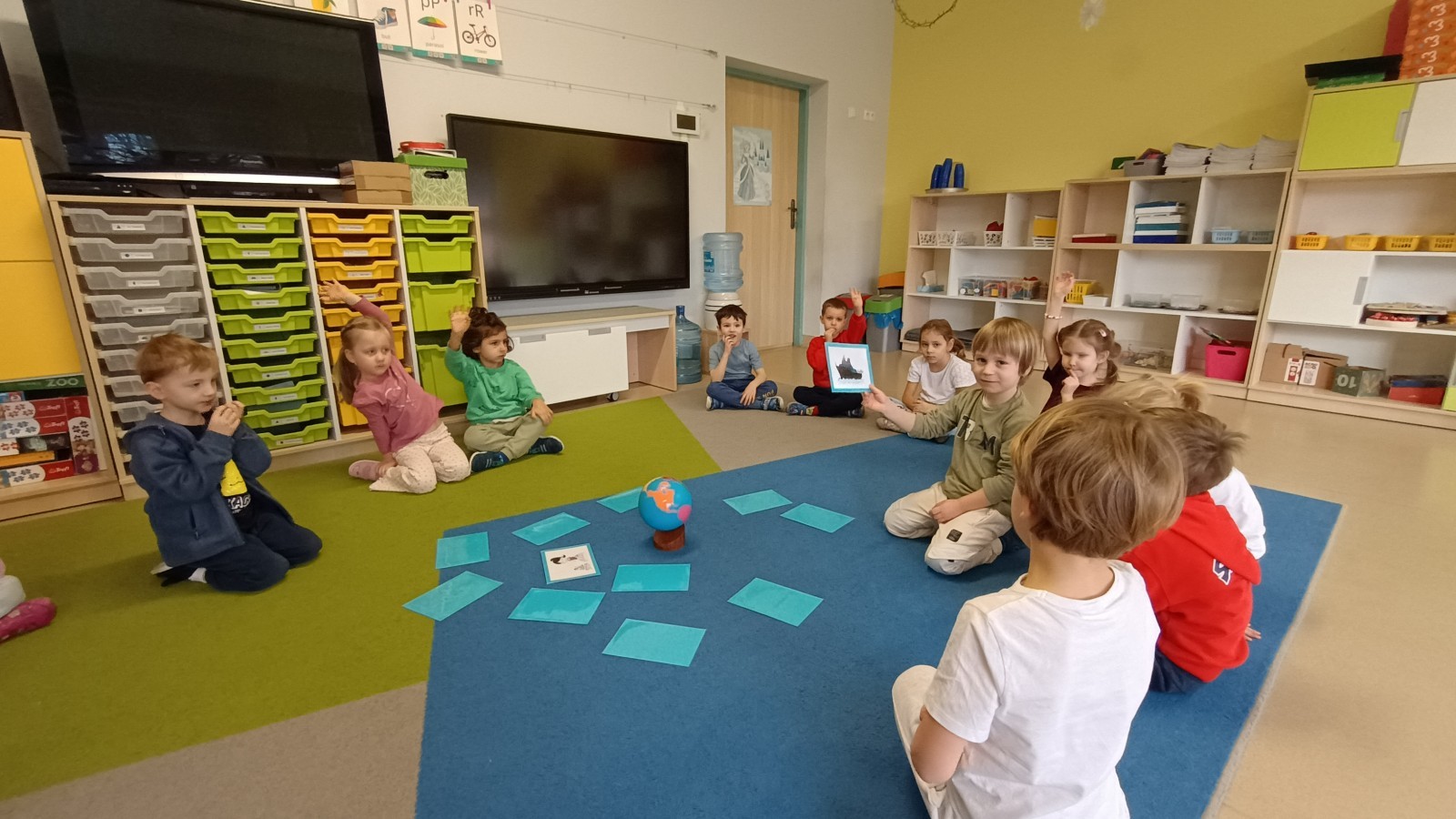 W ramach realizacji zadań konkursowych "Szanuj energię, chroń klimat" Smerfy wzięły udział w spotkaniu z pracownikiem firmy AQUA S.A. Podczas zajęć dzieci utrwaliły wiedzę na temat właściwości wody i jej roli w środowisku oraz konieczności jej oszczędzania. Przedszkolaki wraz z Detektywem Kropelką poznały ciekawostki na temat wody dostarczanej w naszym mieście oraz miejsca, w którym woda jest oczyszczana.