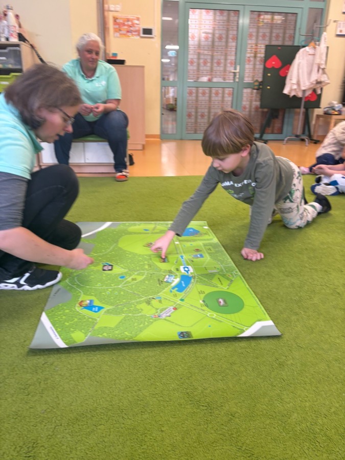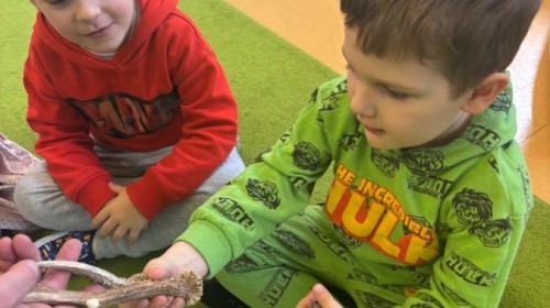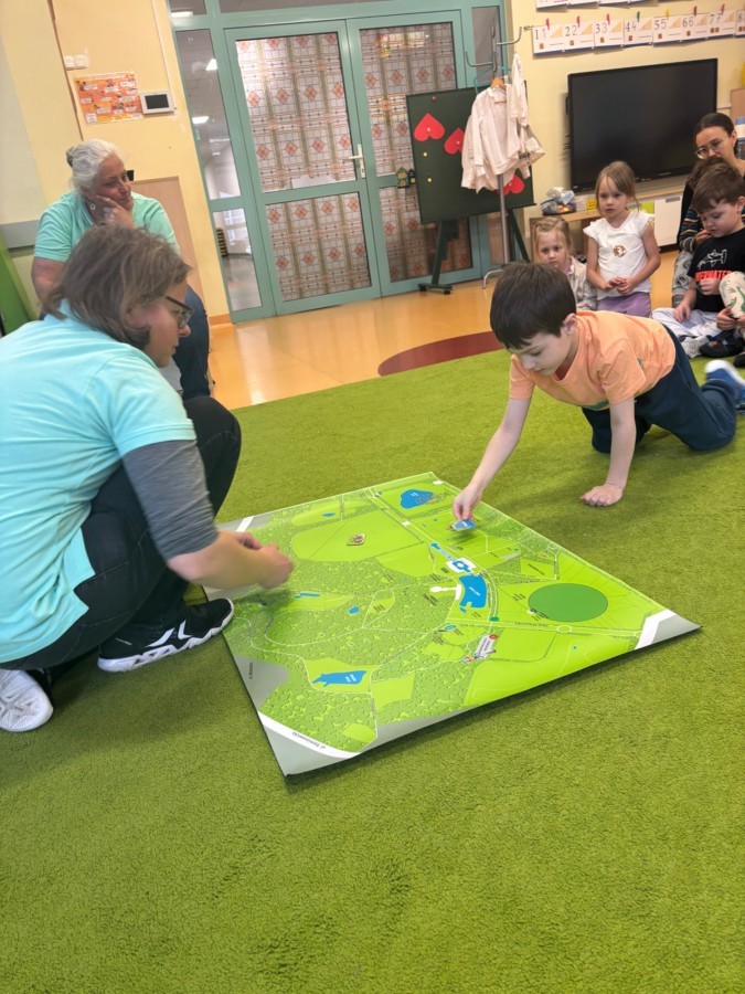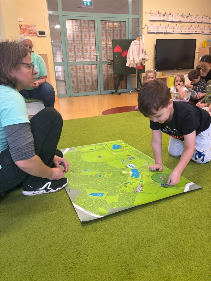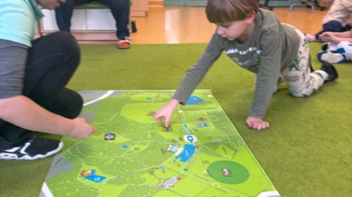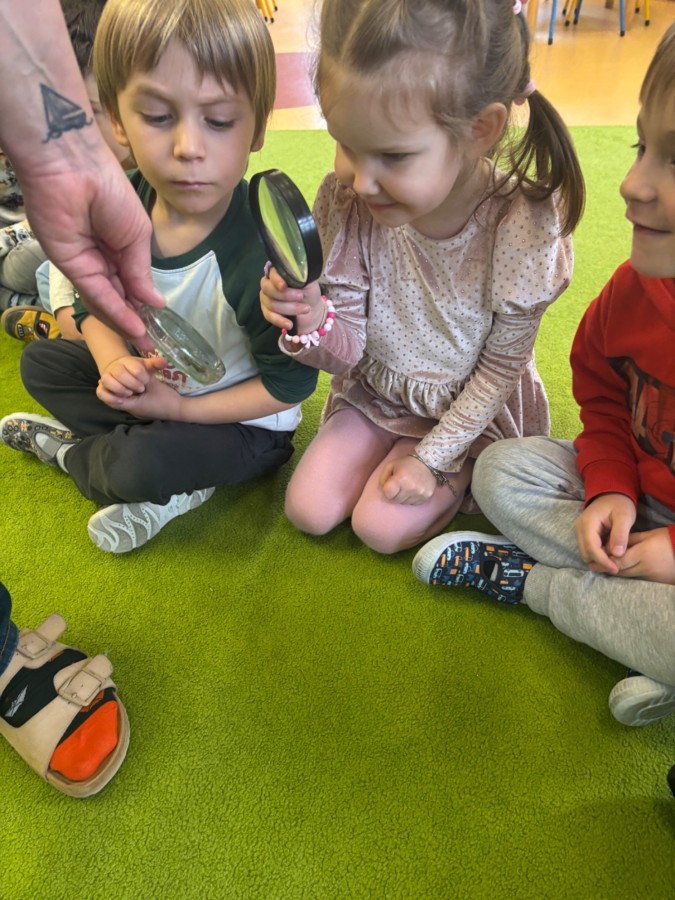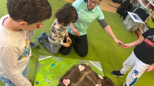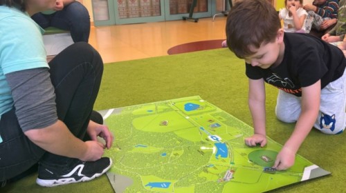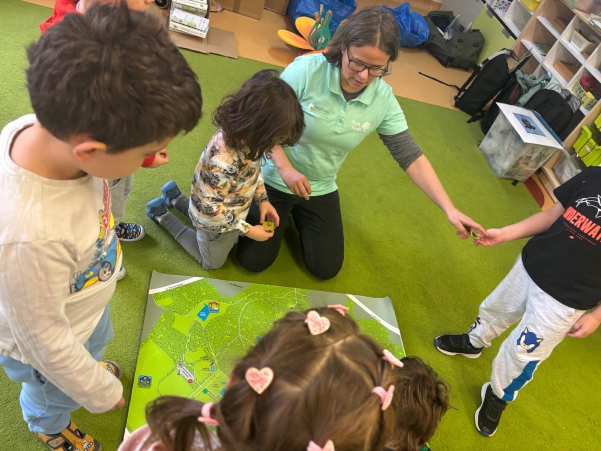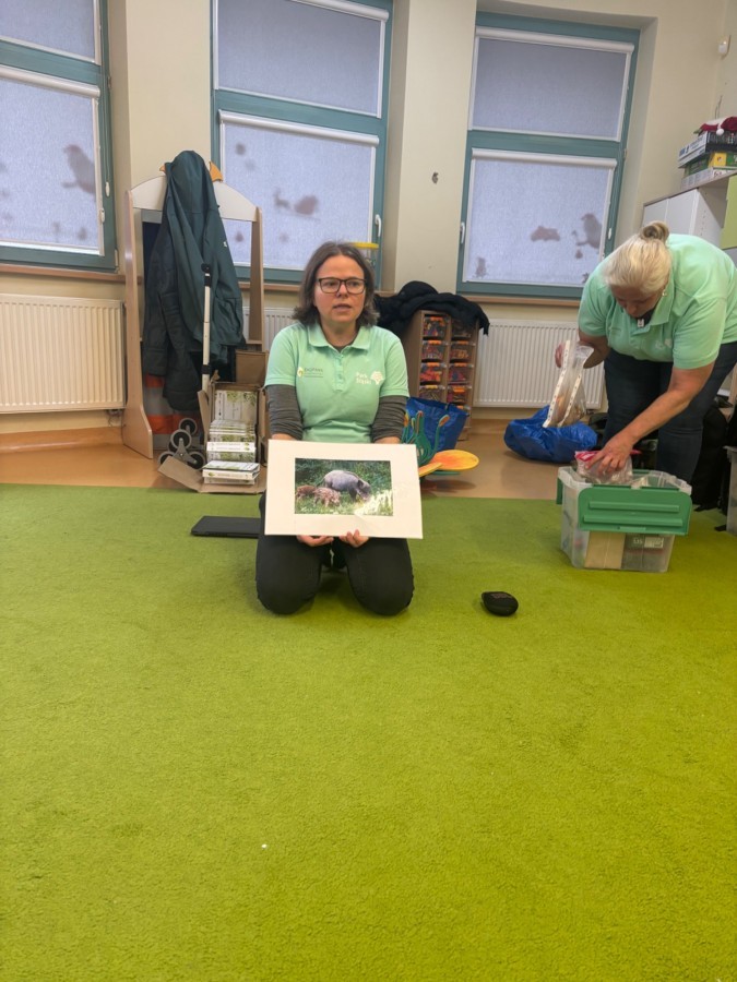 Smerfy w ramach warsztatów "Podróż w bioróżnorodność" poznawały różne gatunki zwierząt parkowych.