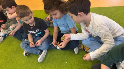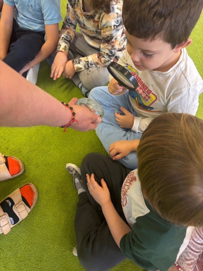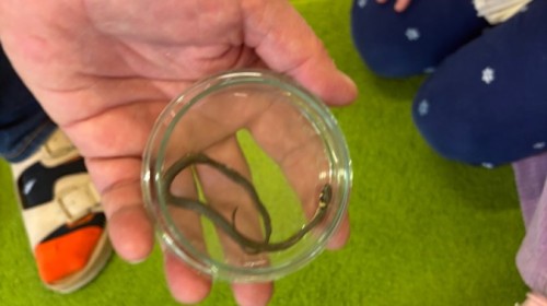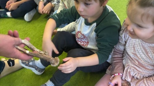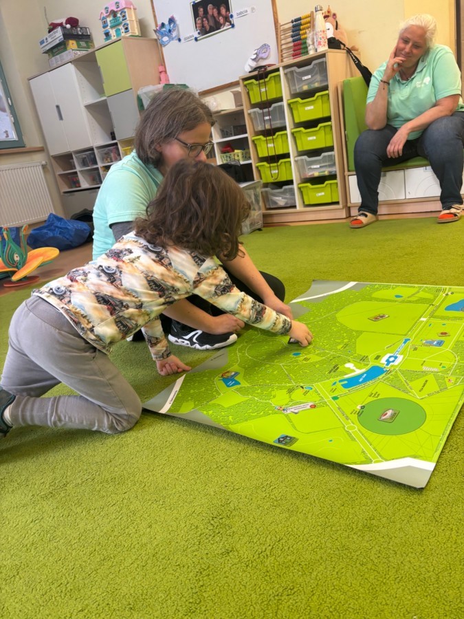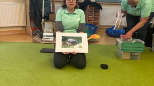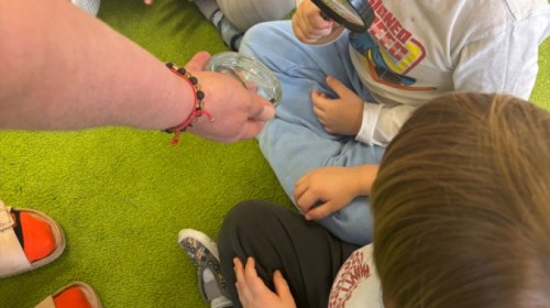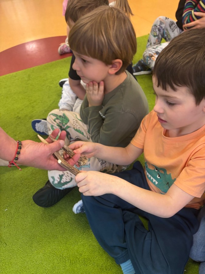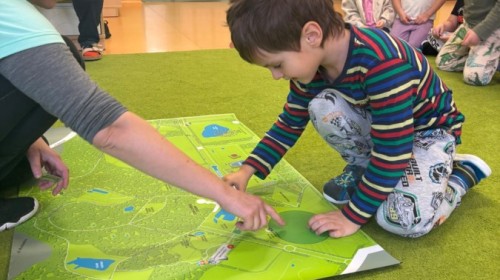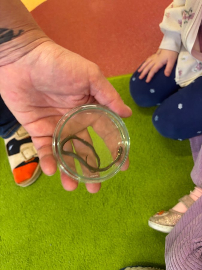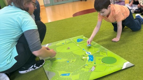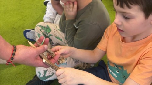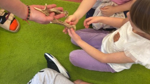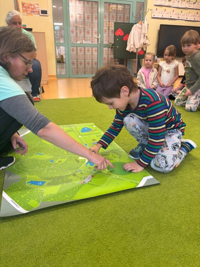 Smerfy w ramach warsztatów "Podróż w bioróżnorodność" poznawały różne gatunki zwierząt parkowych.