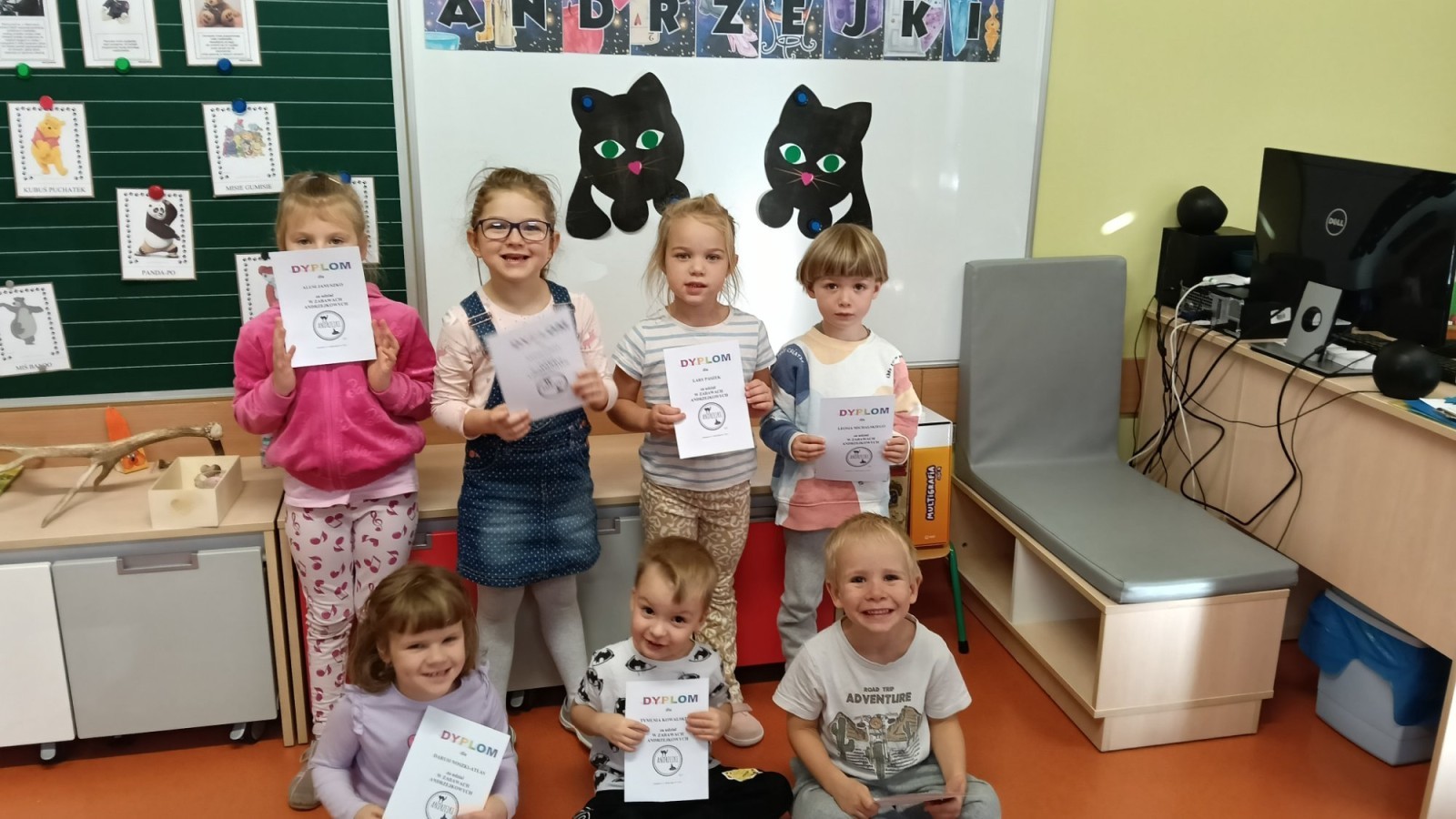 Przedszkolaki poznały historie obchodzenia Andrzejek, uczestniczyły we wróżbach i zabawach andrzejkowych np. Kim zostaniemy w przyszłości? Duszki nauczyły się krótkiej rymowanki: Święty Andrzeju daj nam znać, co się w przyszłości będzie dziać. Były wesołe zabawy przy muzyce i zadania edukacyjne. Dzieci otrzymały pamiątkowe dyplomy, a uroczystość zakończył słodki poczęstunek.