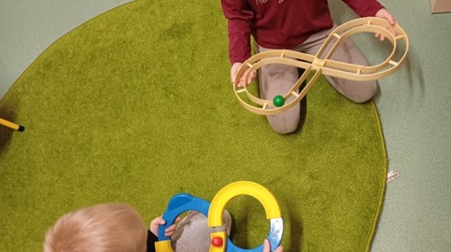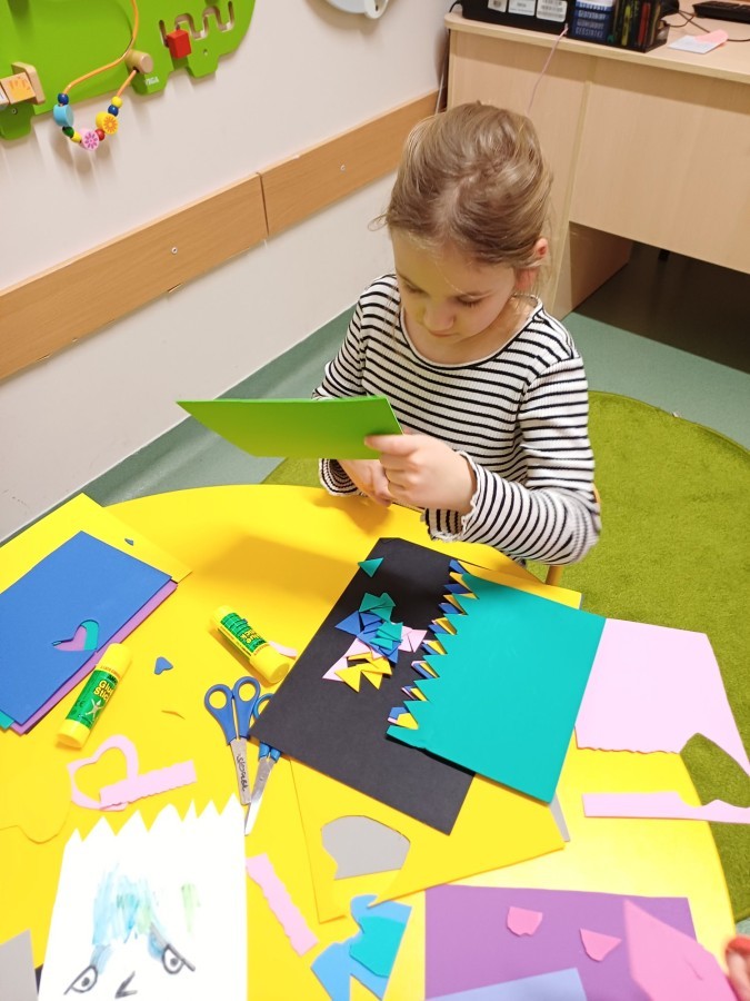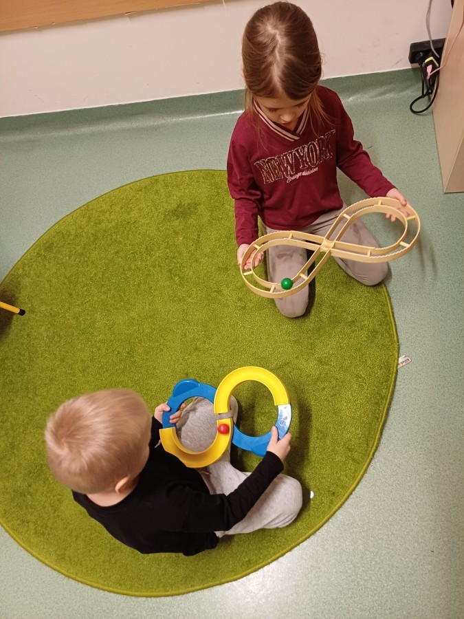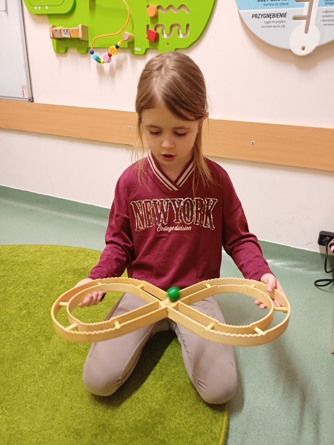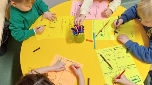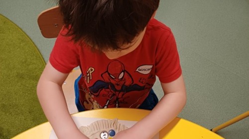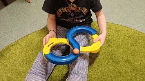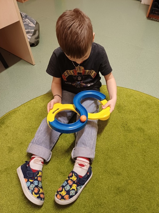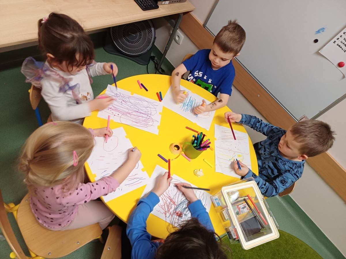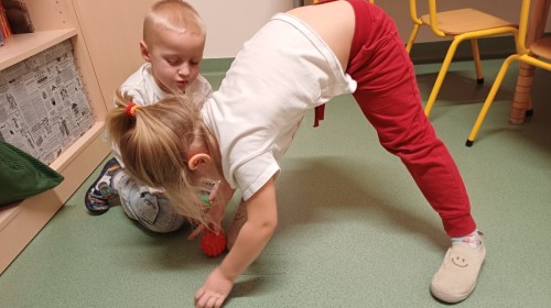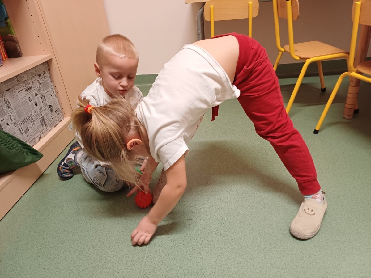 Podczas spotkań pojawiają się również dzieci wykonują ćwiczenia grafomotoryczne wspierające przygotowanie do nauki pisania. Wykorzystywane są elementy integracji sensorycznej (SI), które pomagają w rozwijaniu koordynacji ruchowej oraz regulowaniu napięcia mięśniowego.